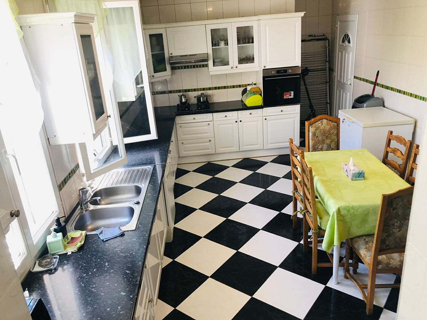 Une grande cuisine séparée équipée et aménagée avec débarras,
