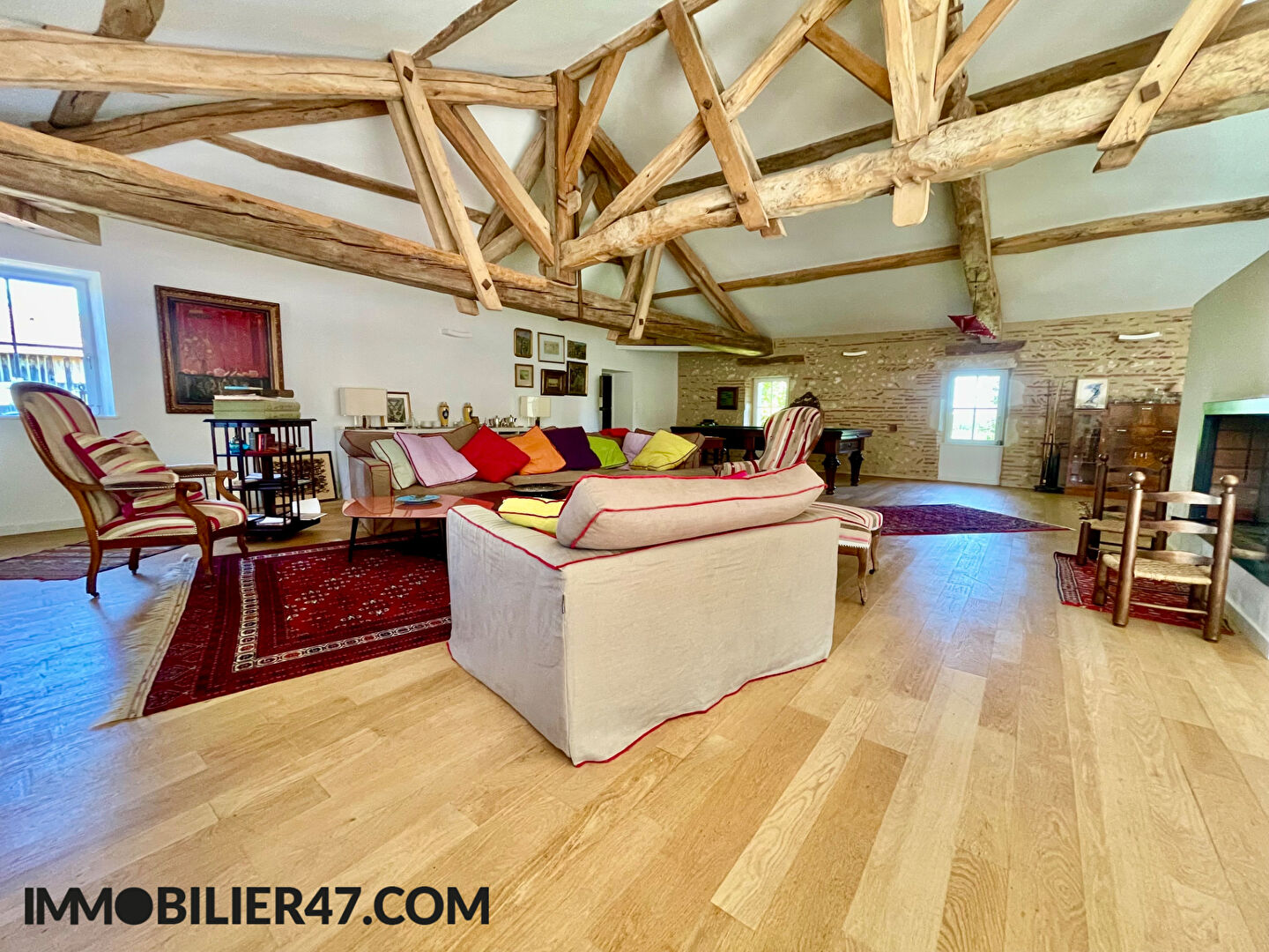 Secteur Castelmoron sur Lot, village dynamique de la Vallée du Lot, à moins de 5 minutes des commodités. Propriété de campagne en pierre traditionnelle de la vallée du Lot, composée d'une magnifique maison entièrement rénovée par architecte, d'une surface habitable de 400 m² habitables pour 9 pieces principales.; où vous profiterez de 5 chambres, dont 2 suites, d'une cuisine indépendante entièrement aménagée et équipée, d'un grand séjour lumineux, d'un salon cosy de près de 100 m² avec cheminée, et d'une salle de sport avec spa. Vous bénéficierez également d'une grange en pierre ainsi que du traditionnel séchoir à tabac. Enfin, 2 grandes terrasse dont une couverte vous permettrons de profiter d'un grand jardin paysagé sans vis à vis et de sa belle piscine sécurisée. Le tout sur une parcelle de 8 654 m². Les honoraires d'agence sont à la charge du vendeur.