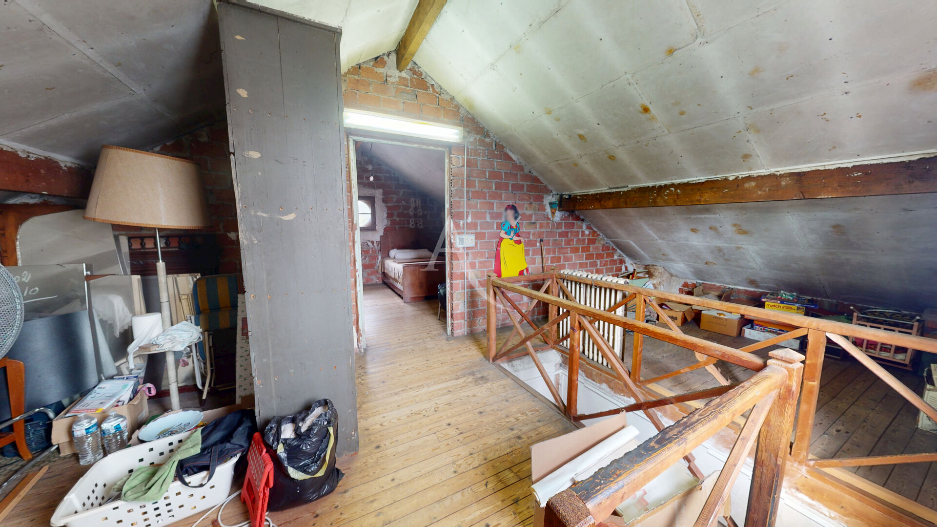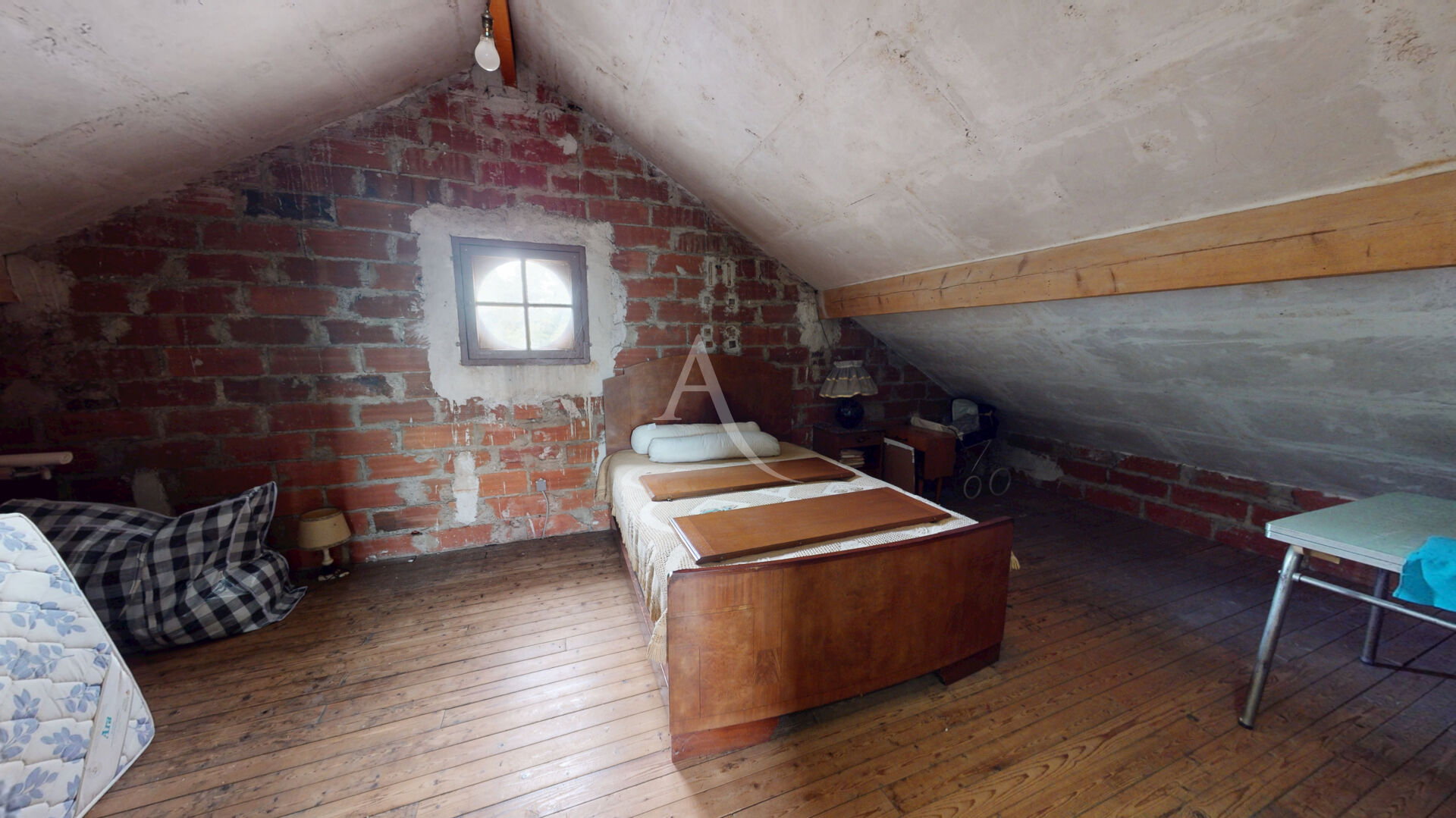 À l'étage, un palier dessert une chambre nécessitant des travaux, avec la possibilité d'optimiser l'espace selon vos envies. La surface au sol de cet étage est de 61,06 m².