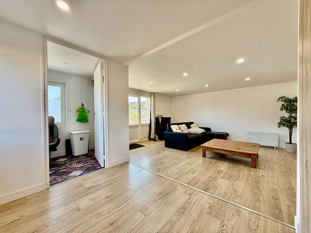 - Une magnifique pièce de vie lumineuse de 41m² avec poêle à bois de qualité