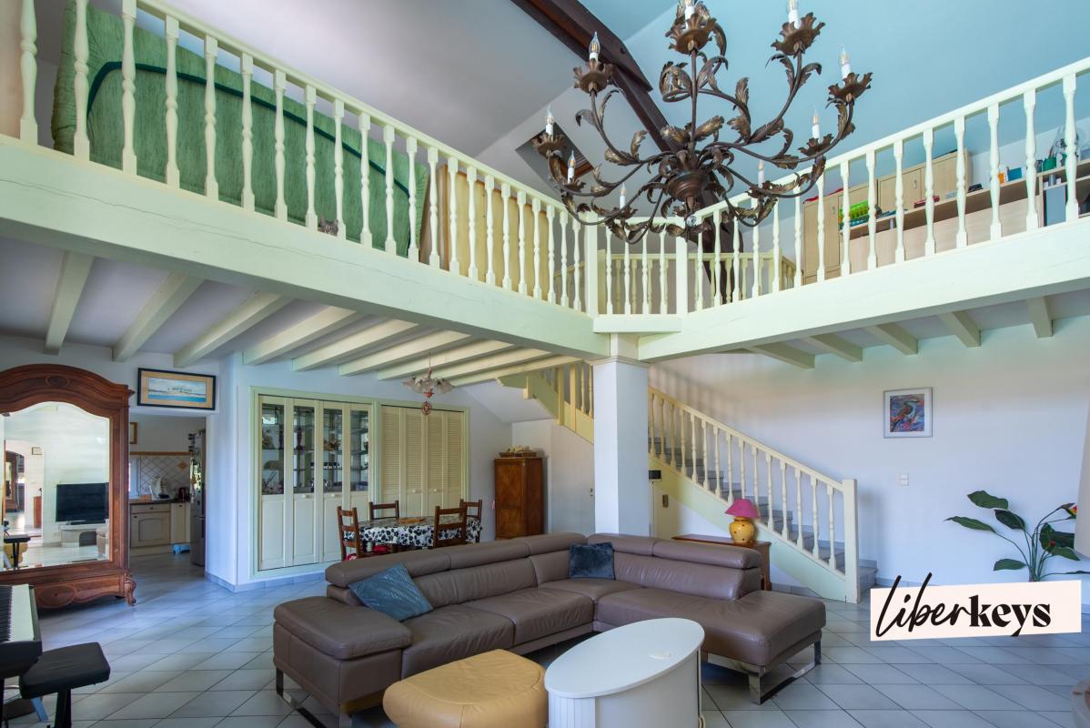 Vitraux artisanaux, plafond cathédrale et matériaux nobles signent une ambiance feutrée et lumineuse, pensée pour une vie familiale raffinée ou une résidence secondaire pleine de charme.