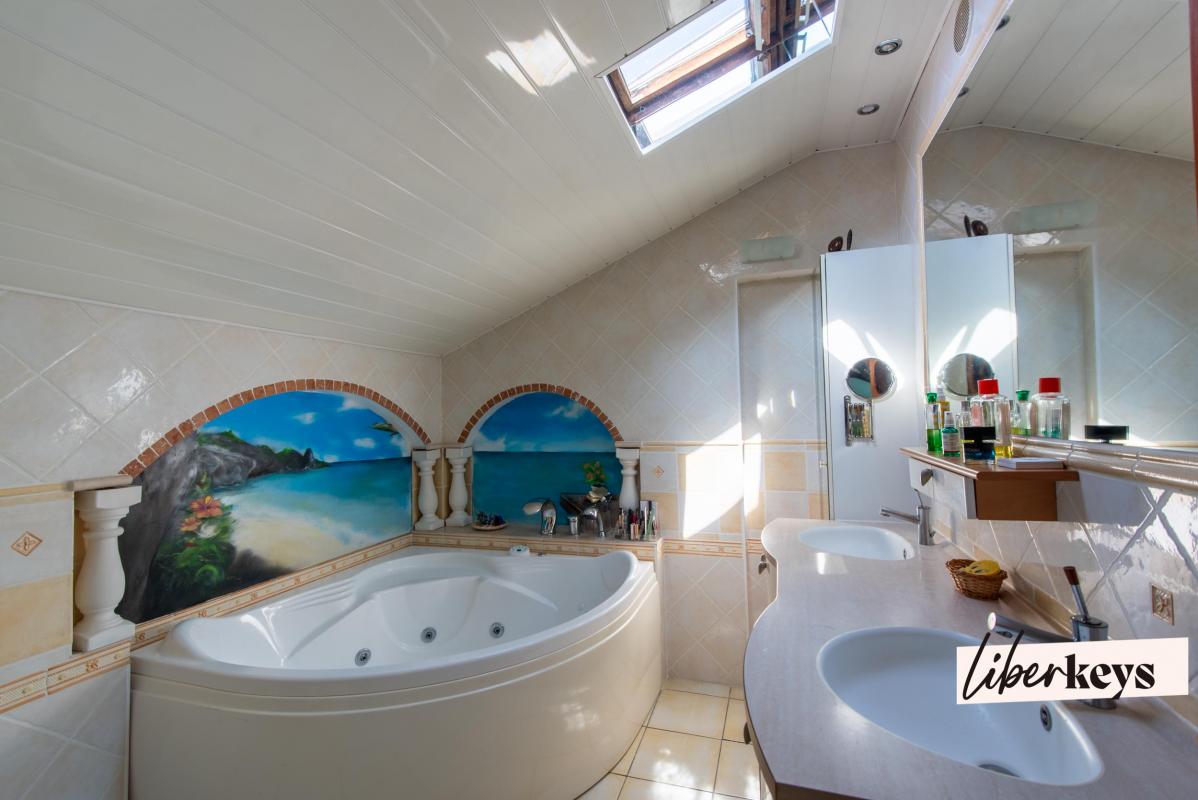 3 salles d'eau / bains, 2 WC, cave et buanderie