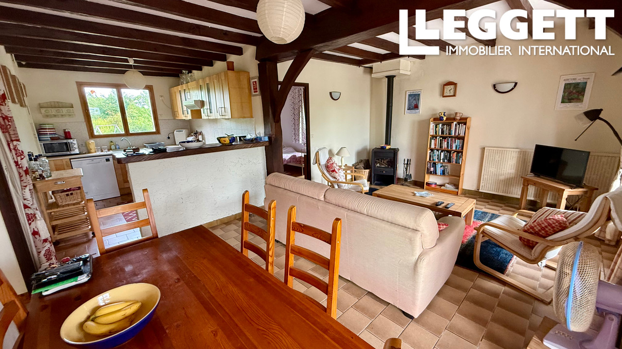 Le salon, la cuisine et la salle à manger à aire ouverte sont lumineux et aérés avec un accès direct au jardin.