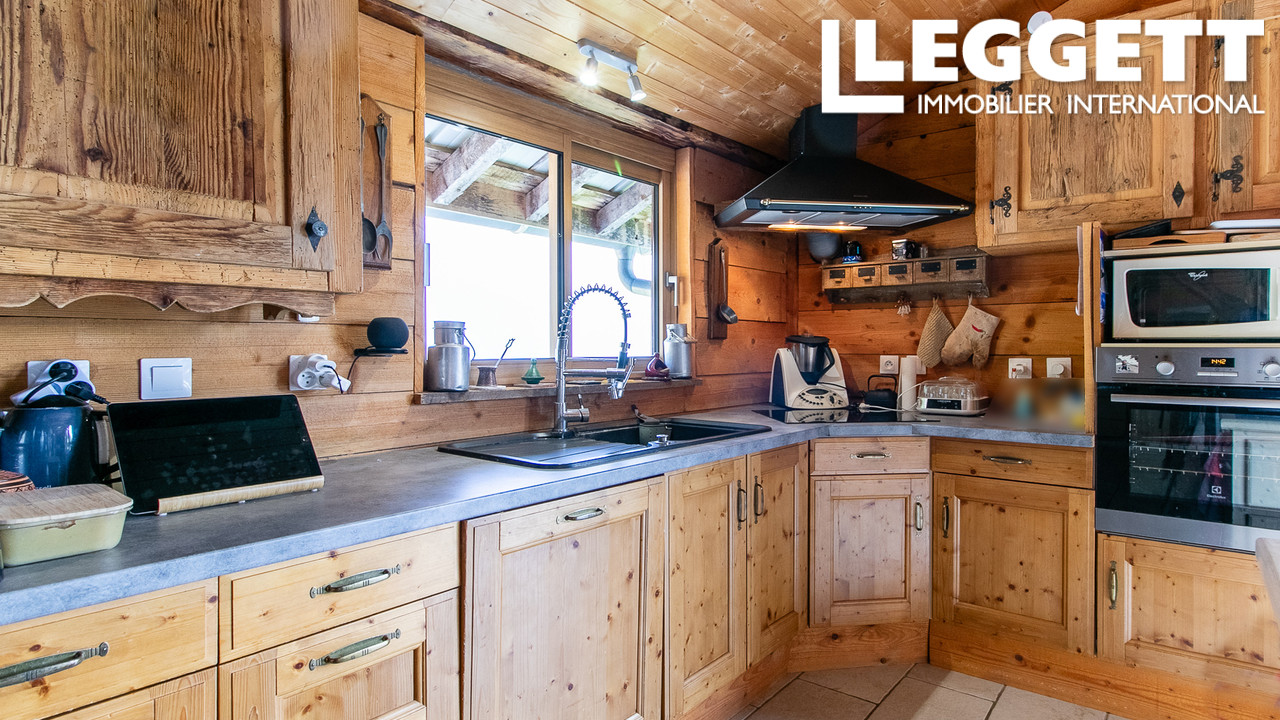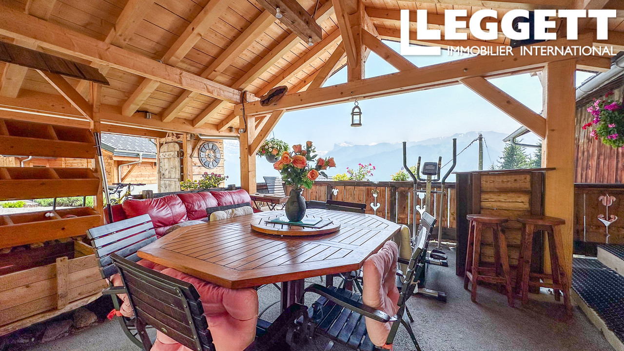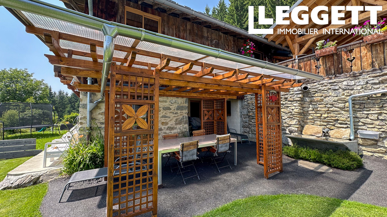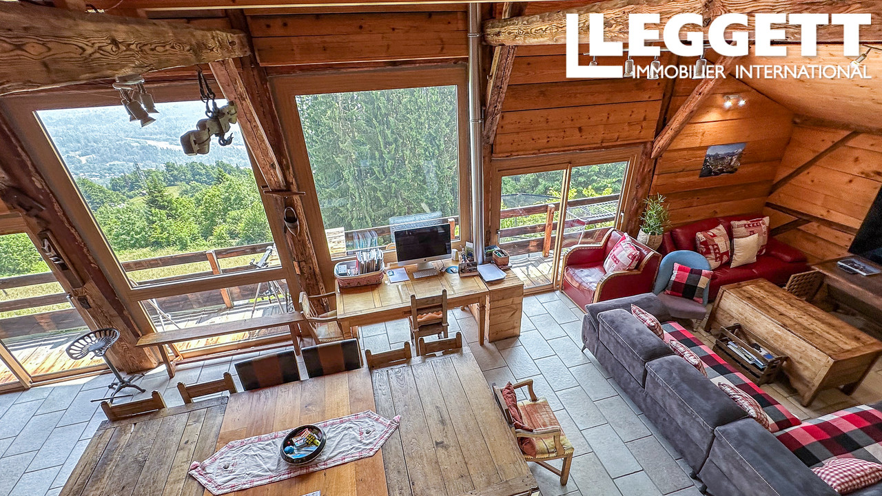 A38058JST74 - La ferme a été entièrement rénovée tout en conservant son charme rustique. L'espace de vie principal s'étend sur près de 60 m², avec de hauts plafonds et de grandes baies vitrées qui offrent une vue imprenable sur les montagnes environnantes.
