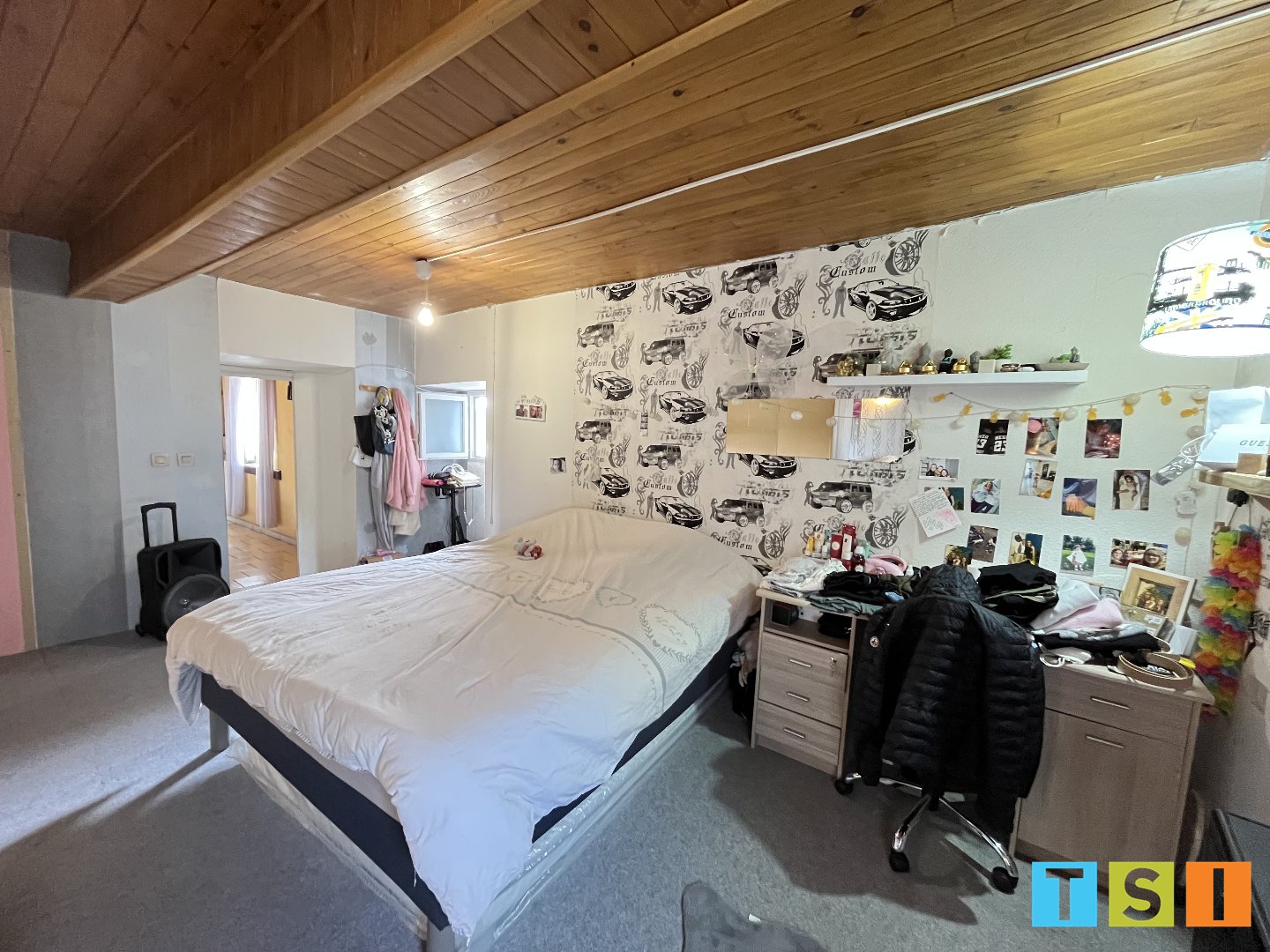 La maison se compose d'un agréable salon de 28 m², d'une cuisine avec espace salle à manger, d'une salle d'eau, ainsi que d'une grande chambre de 28 m², offrant un espace nuit généreux avec une séparation possible pour créer un coin bureau ou une seconde chambre.