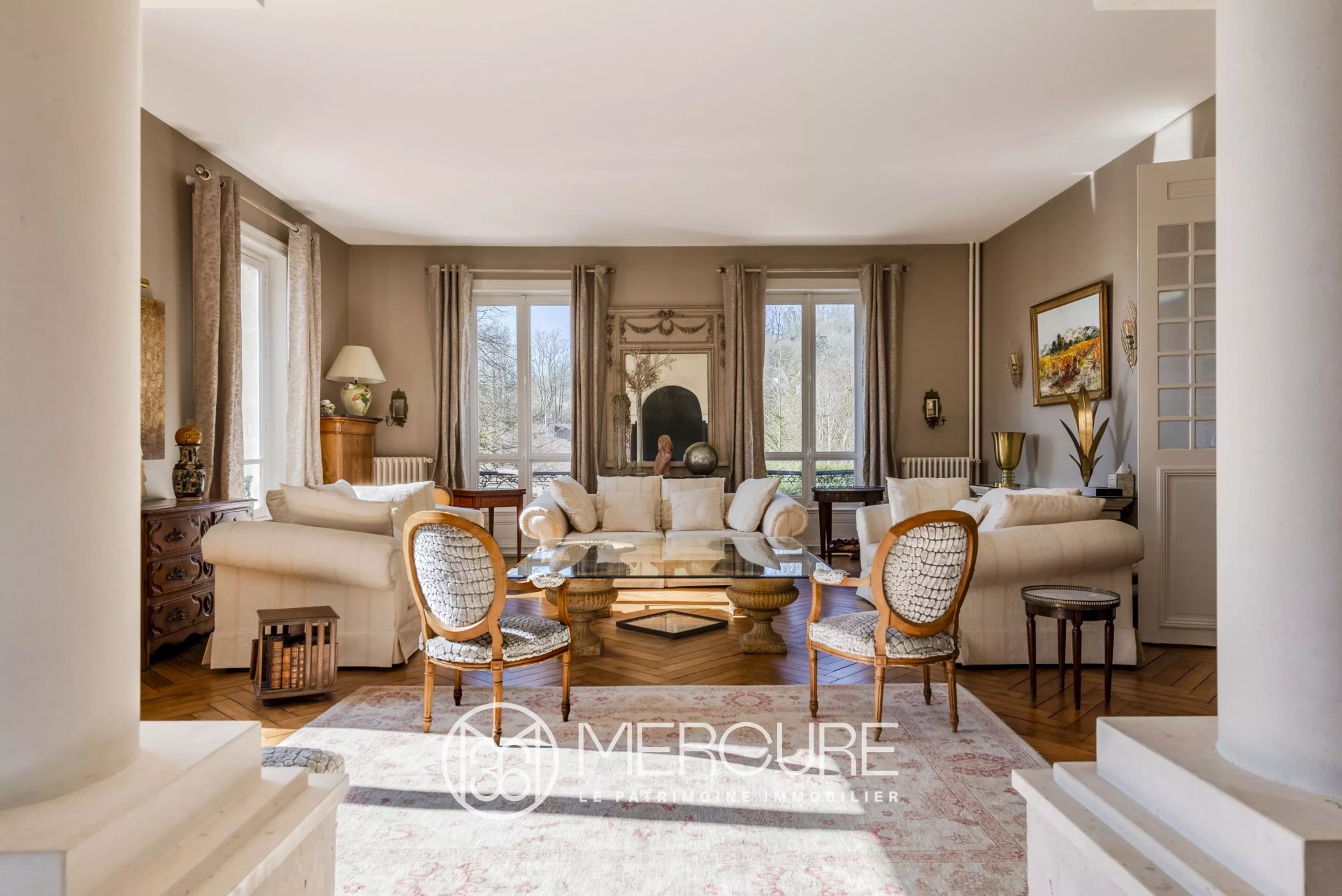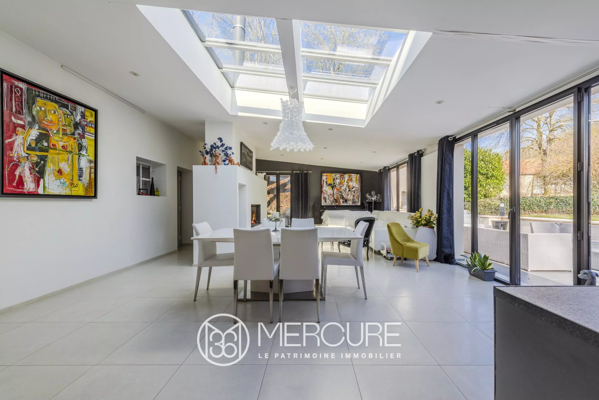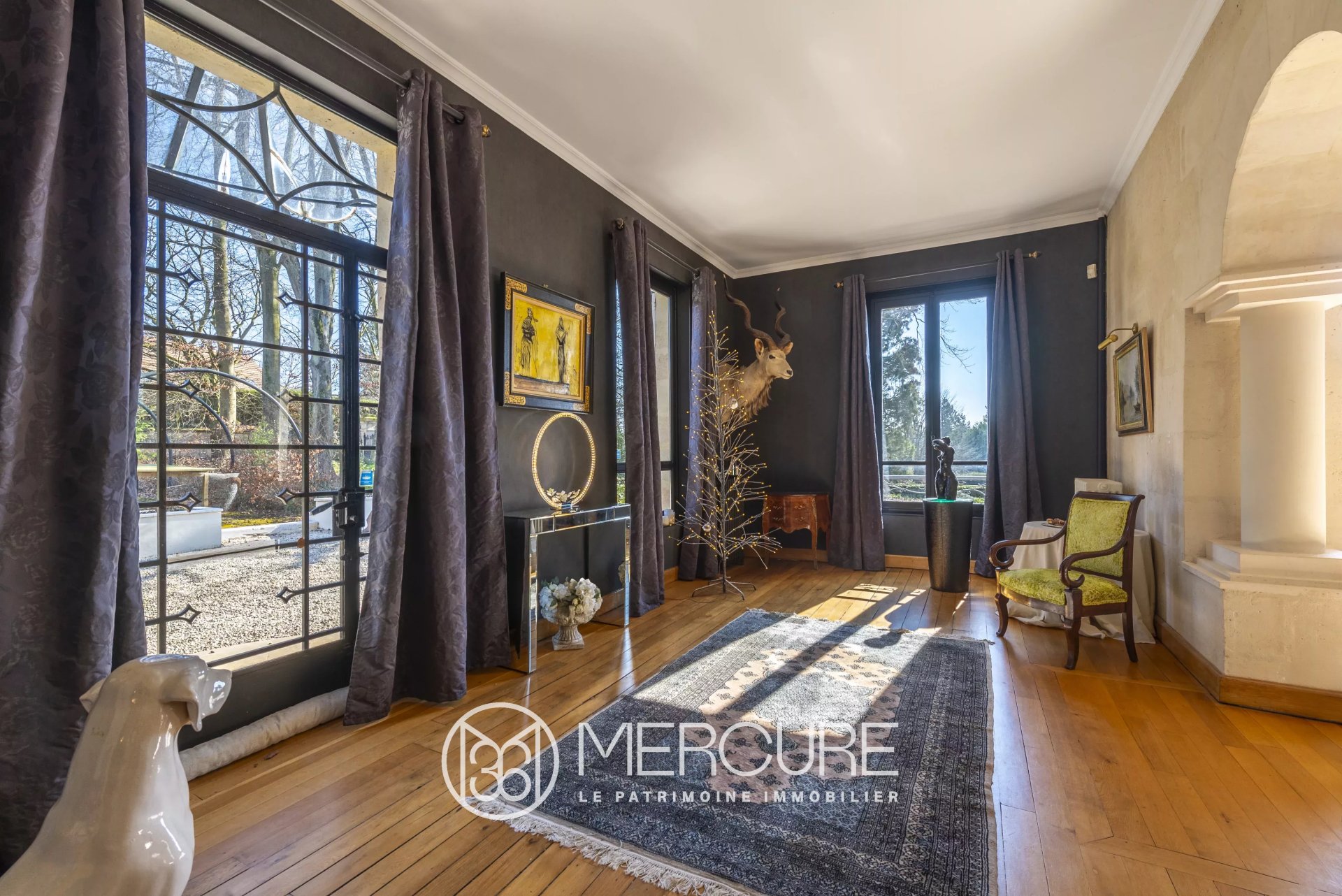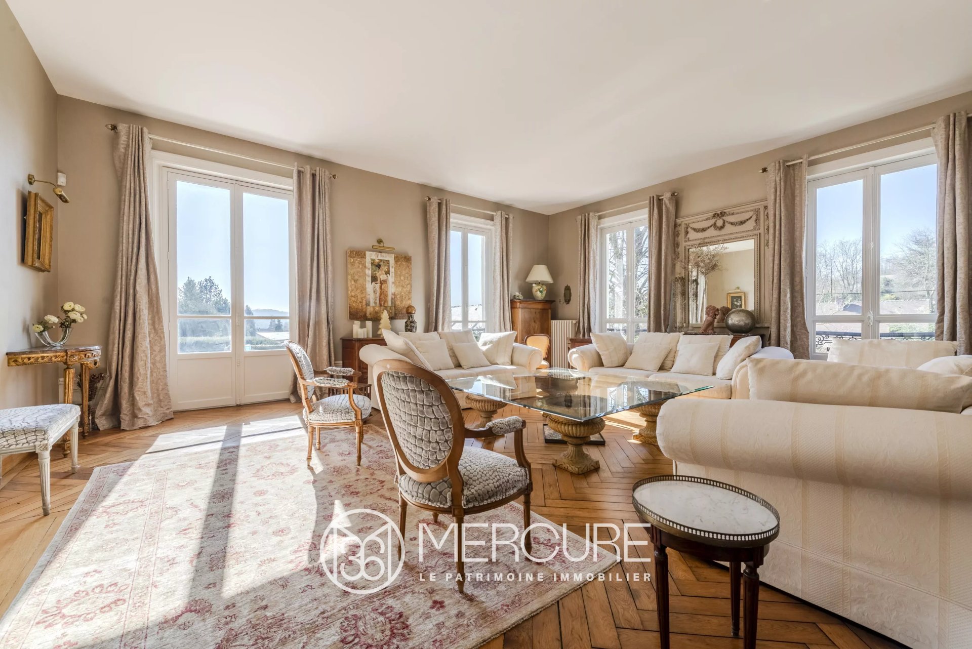 Élégante demeure en pierre de taille, prolongée par une extension contemporaine. Bénéficiant d'une exposition plein Sud et d'un beau panorama, elle offre environ 465m² habitables et 14 pièces principales.