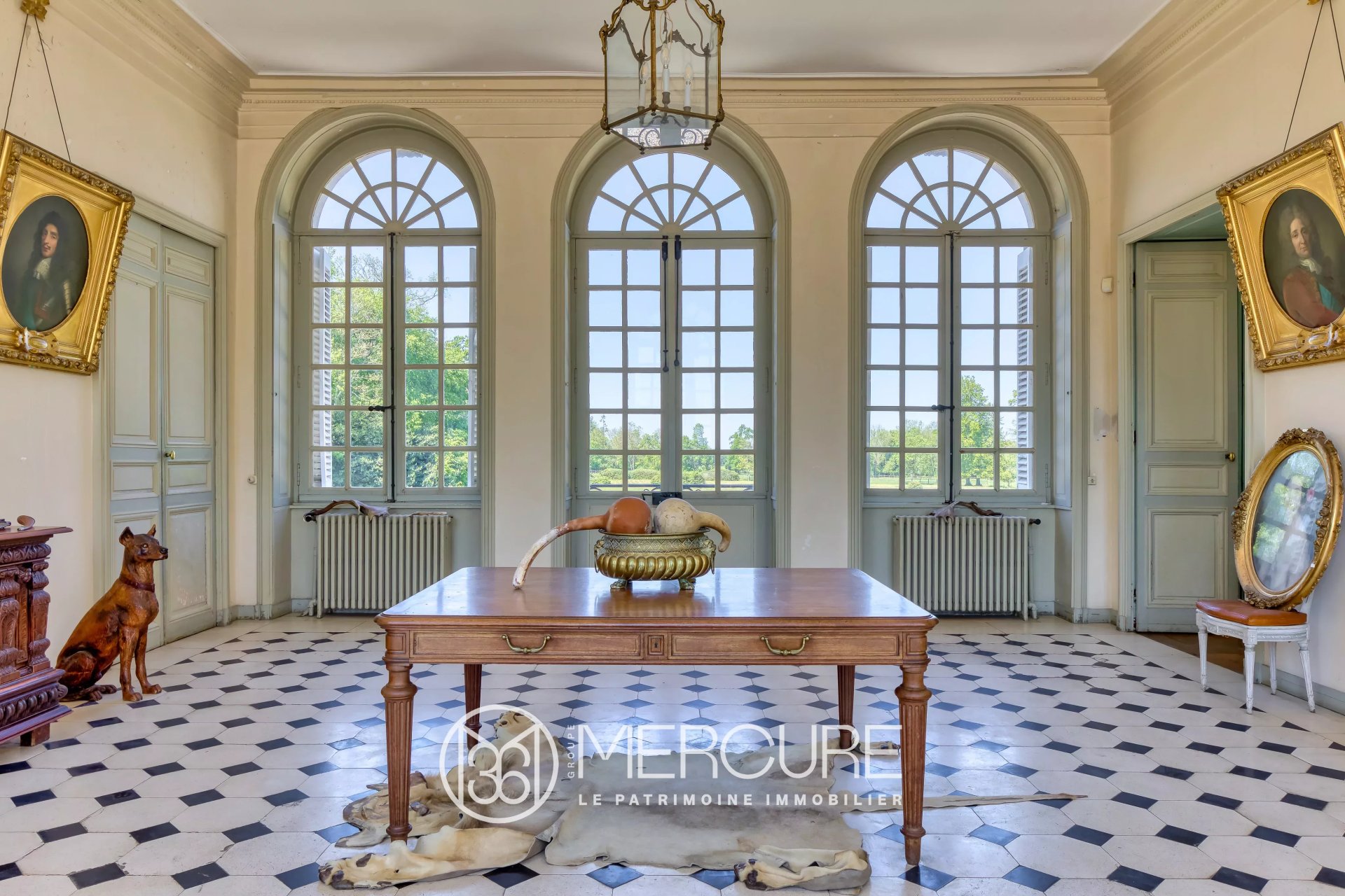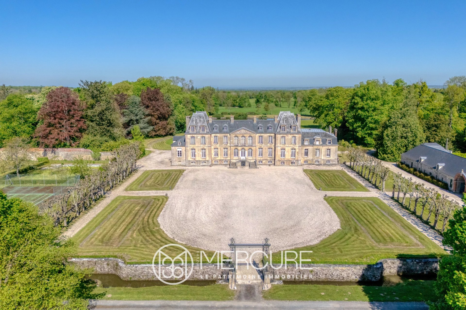 Cette prestigieuse demeure (environ 1200 m²) est entourée de son romantique parc à l'anglaise clos par un étang au milieu de ses herbages, d'un verger avec piscine et tennis, de deux pavillons d’angle, de plusieurs communs et de quatorze boxes. Il présente toutes les caractéristiques d’un domaine aristocratique du XVIIIe siècle.
