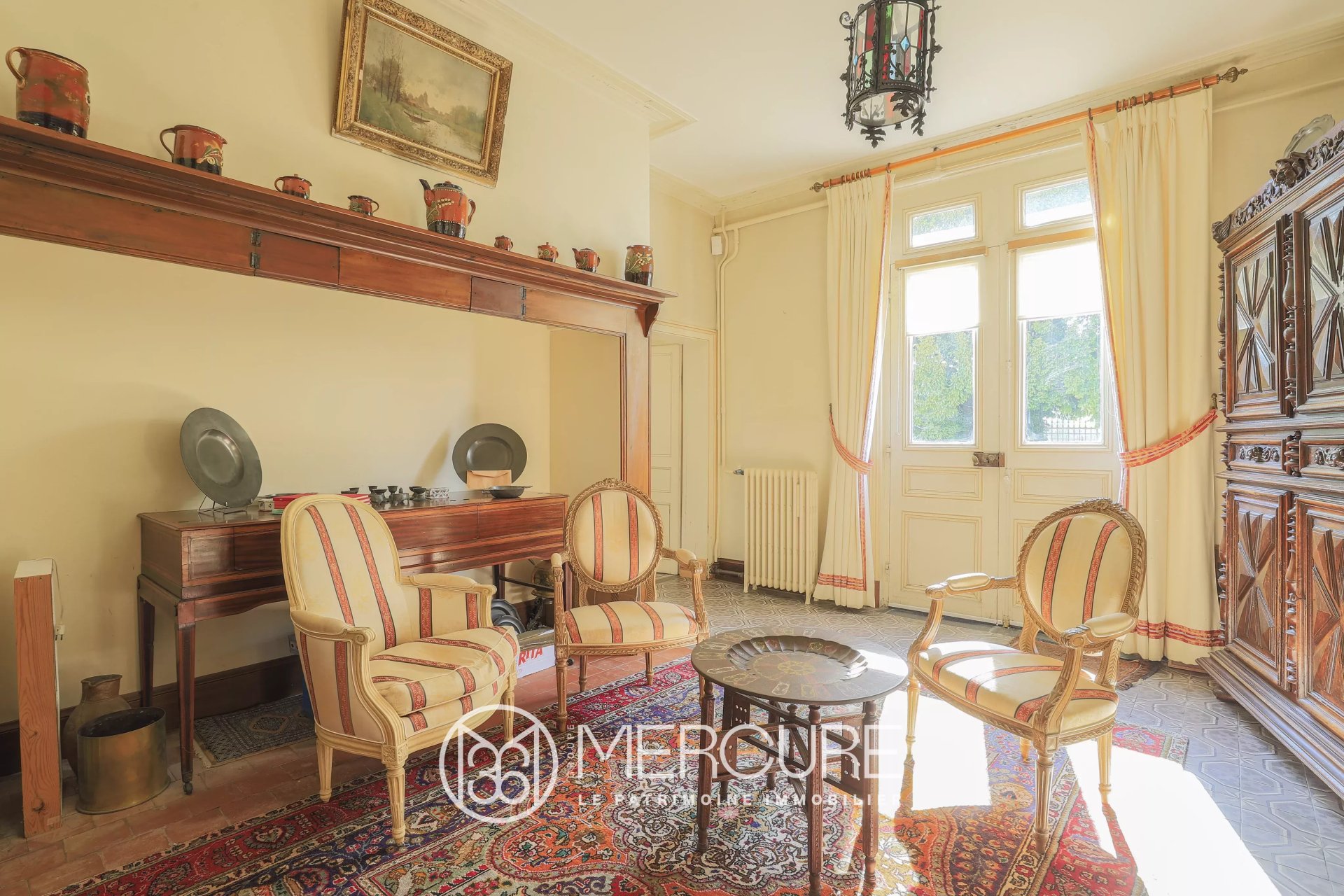 Dans la partie principale, un espace famille avec une chambre double, une chambre simple, une bibliothèque et une salle de bain. A côté, une chambre de maître. Puis un magnifique séjour/bureau aux jolies boiseries avec cheminée surplombe le parc. Se trouve également un second espace chambre et salle de bain.