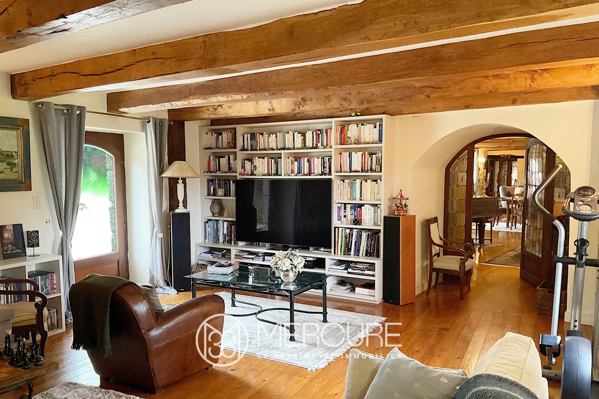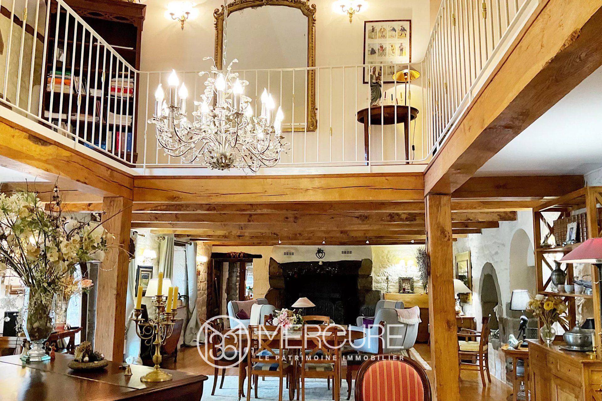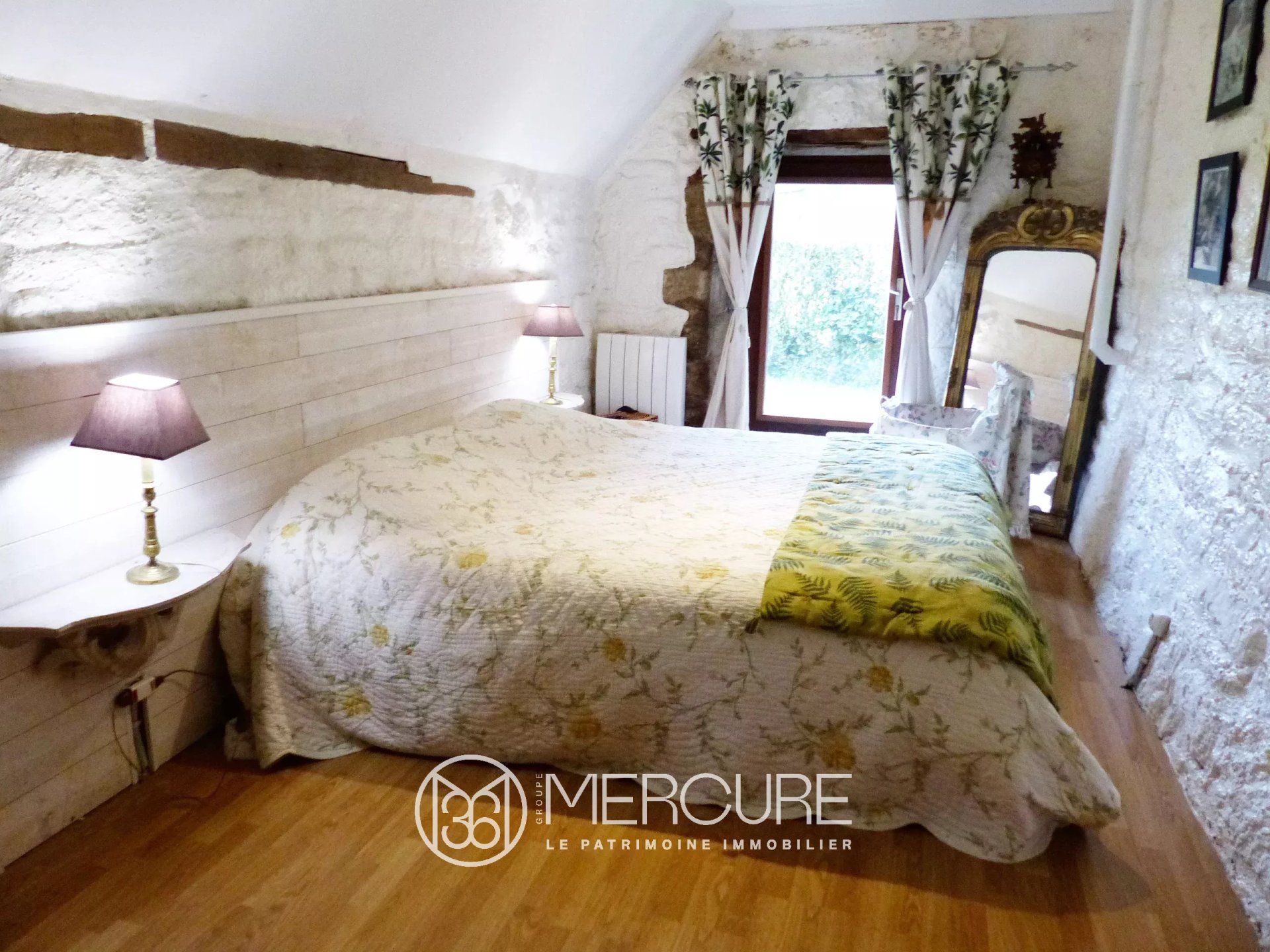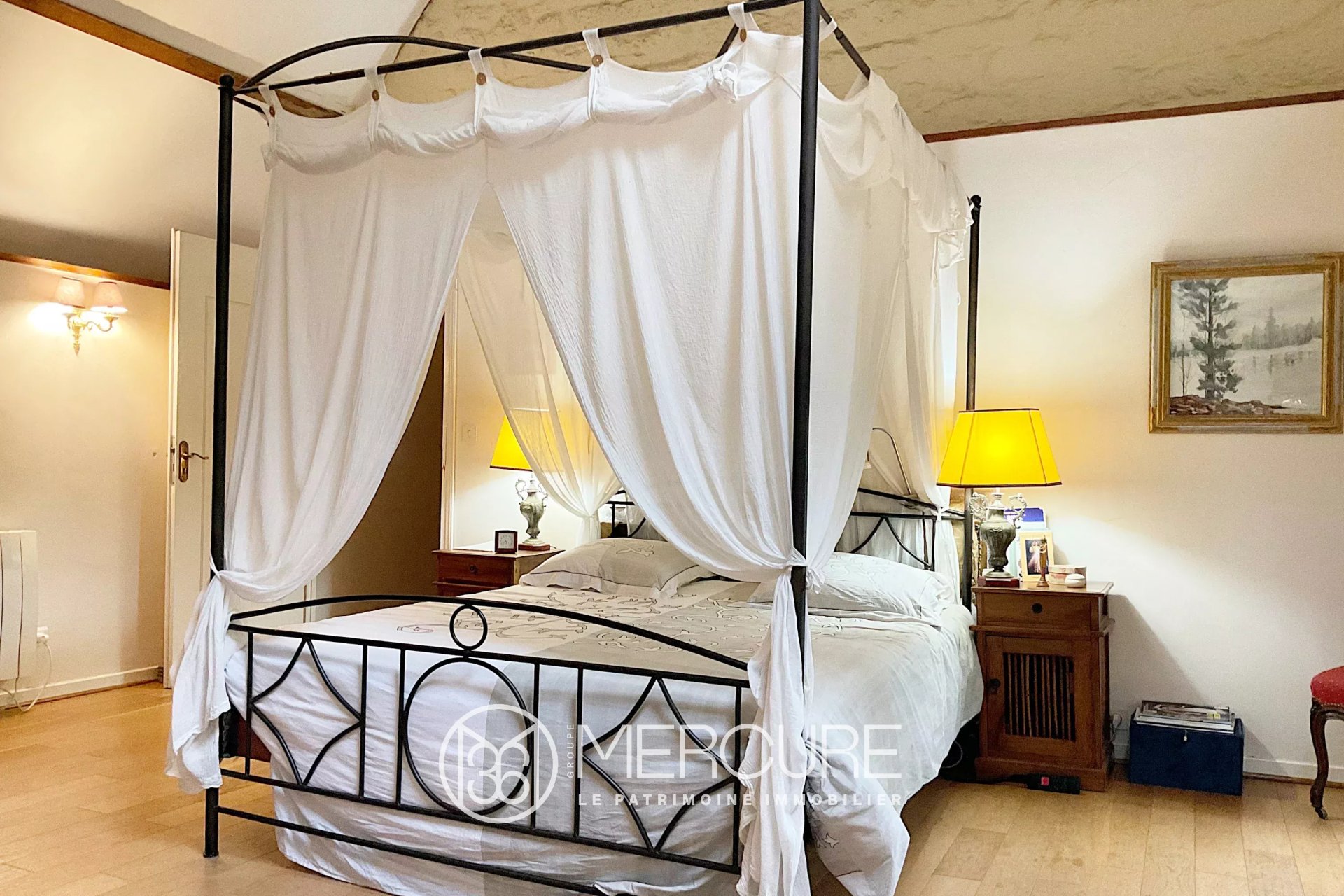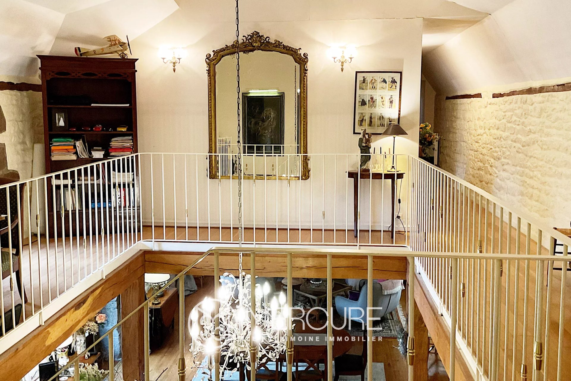 L'étage, accessible par un splendide escalier aux marches de bois traditionnelles donne sur une vaste mezzanine et distribue un ensemble de quatre belles chambres dont une "cathédrale" avec un accès extérieur à la terrasse en rez-de-jardin.