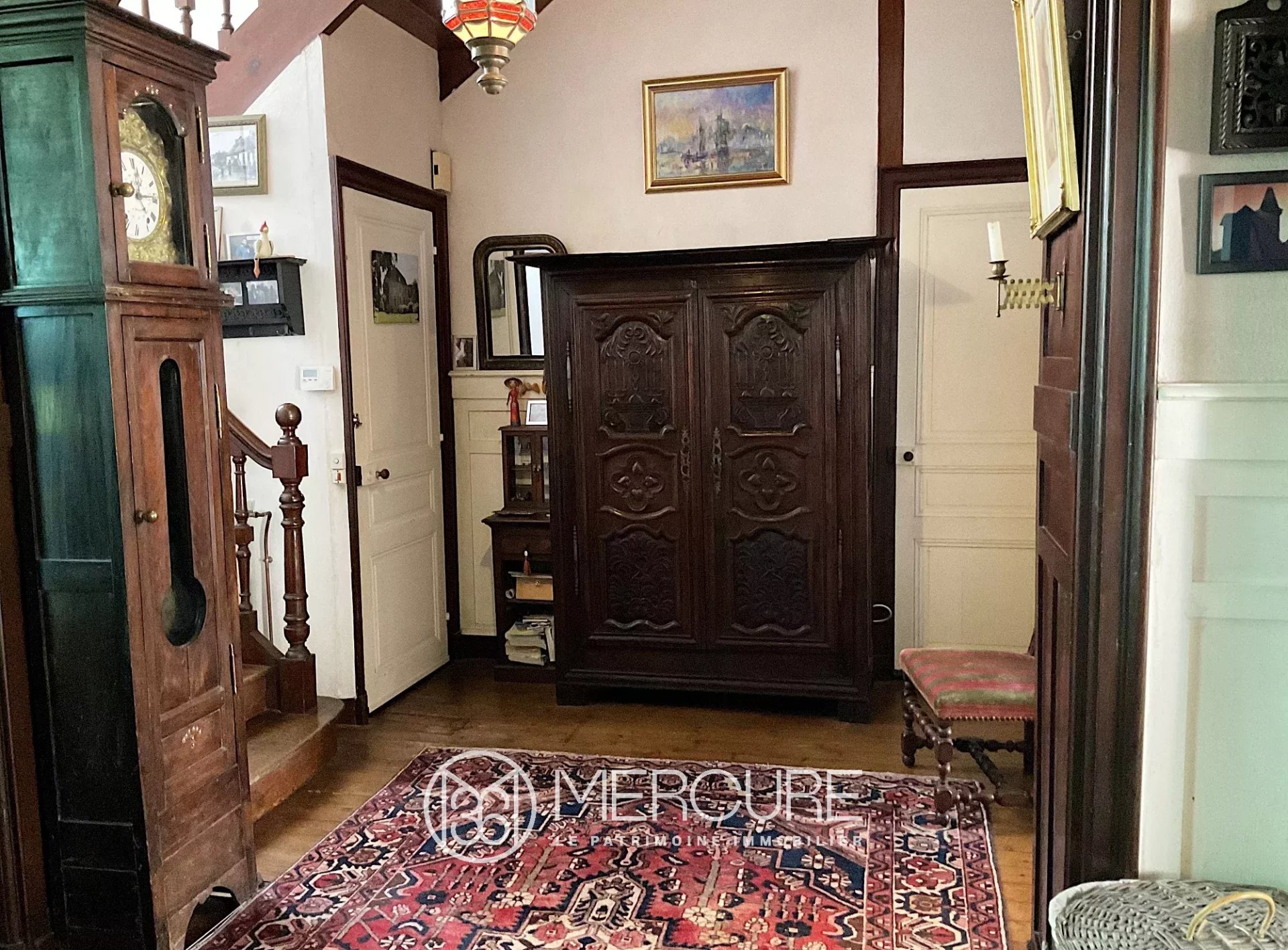 À l'intérieur, l'ambiance authentique est marquée par de superbes boiseries, des plafonds moulurés, des poutres apparentes et un escalier remarquable.