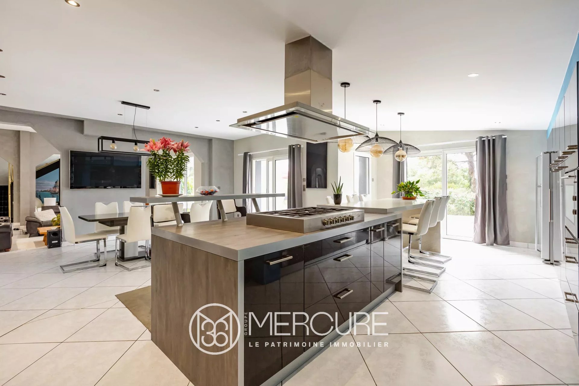 Cette belle propriété située au cœur de son parc de plus d'un hectare offre : une belle entrée qui dessert une spacieuse salle de réception et sa piscine, une seconde pièce de vie ouverte sur une cuisine entièrement aménagée et équipée.