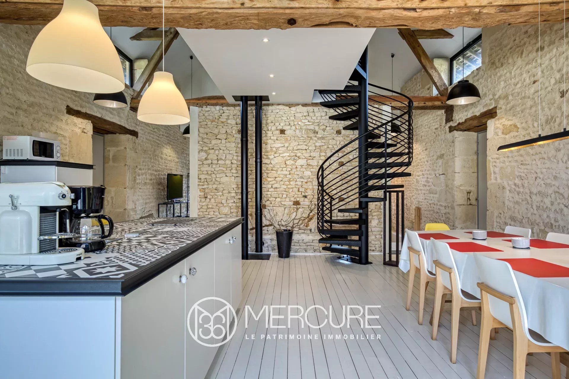 Le vaste logis, rénové au goût du jour dispose de belles pièces de réception avec des cheminées et d’une très agréable cuisine moderne.
