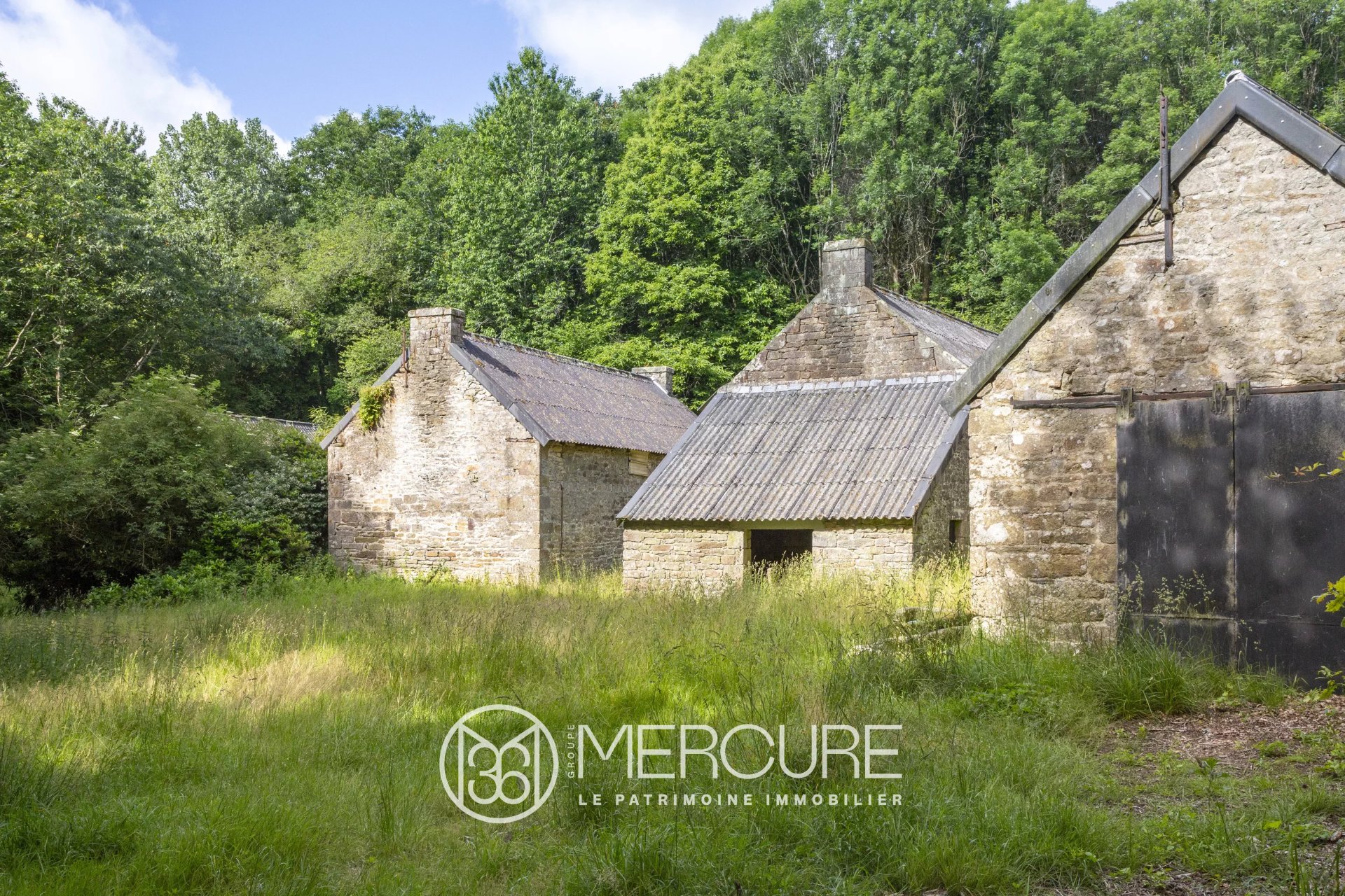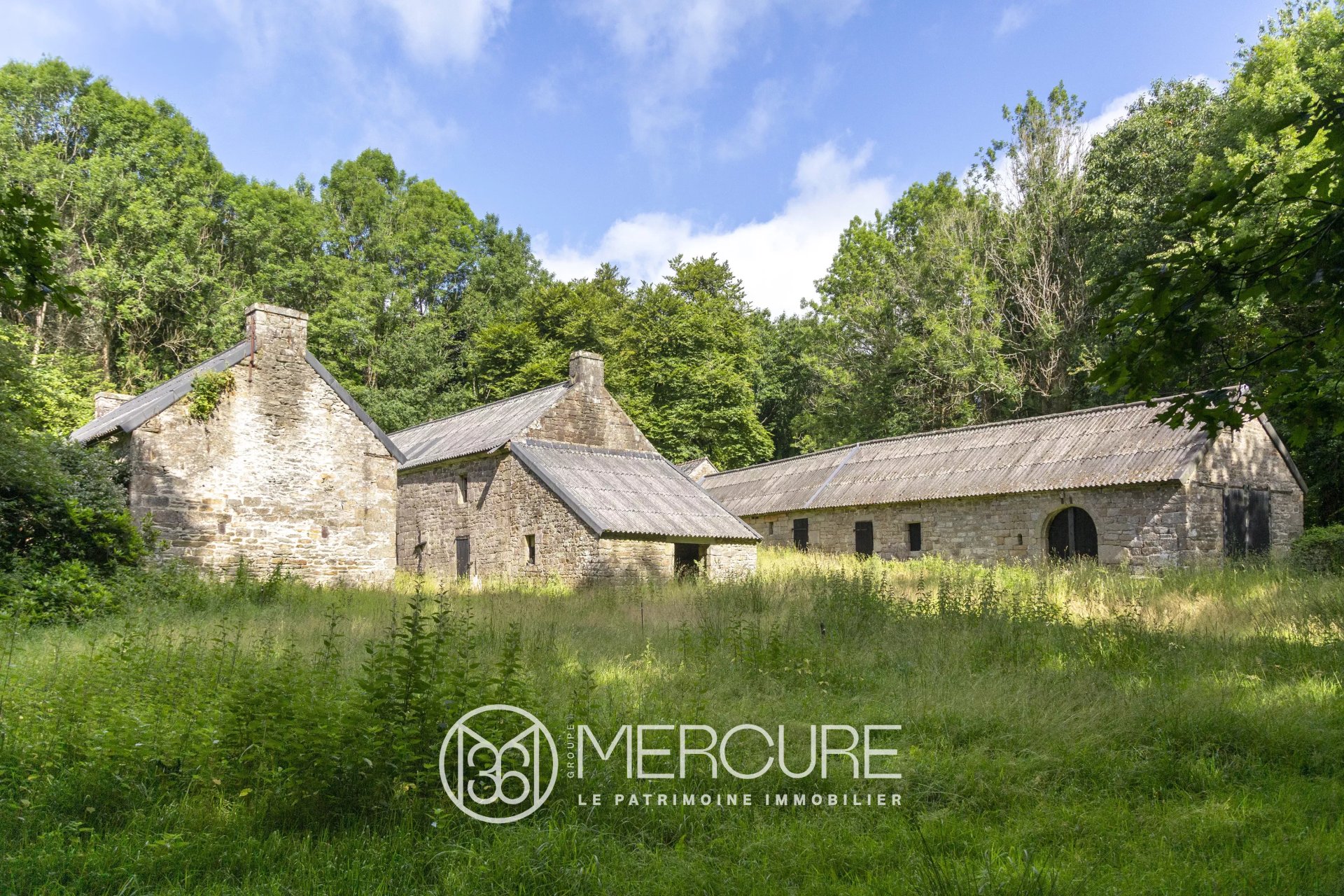 A 20mn de Quimper (Gare TGV), proche de Briec, dans un endroit magique de « bout du monde » au milieu de bois accessible par une petite route s’achevant en impasse, hameau complet sur une clairière de 2 810m² entourant 4 bâtiments de granit en forme de longères au cœur de différentes parcelles boisées pour un total d'environ 13.6 ha.