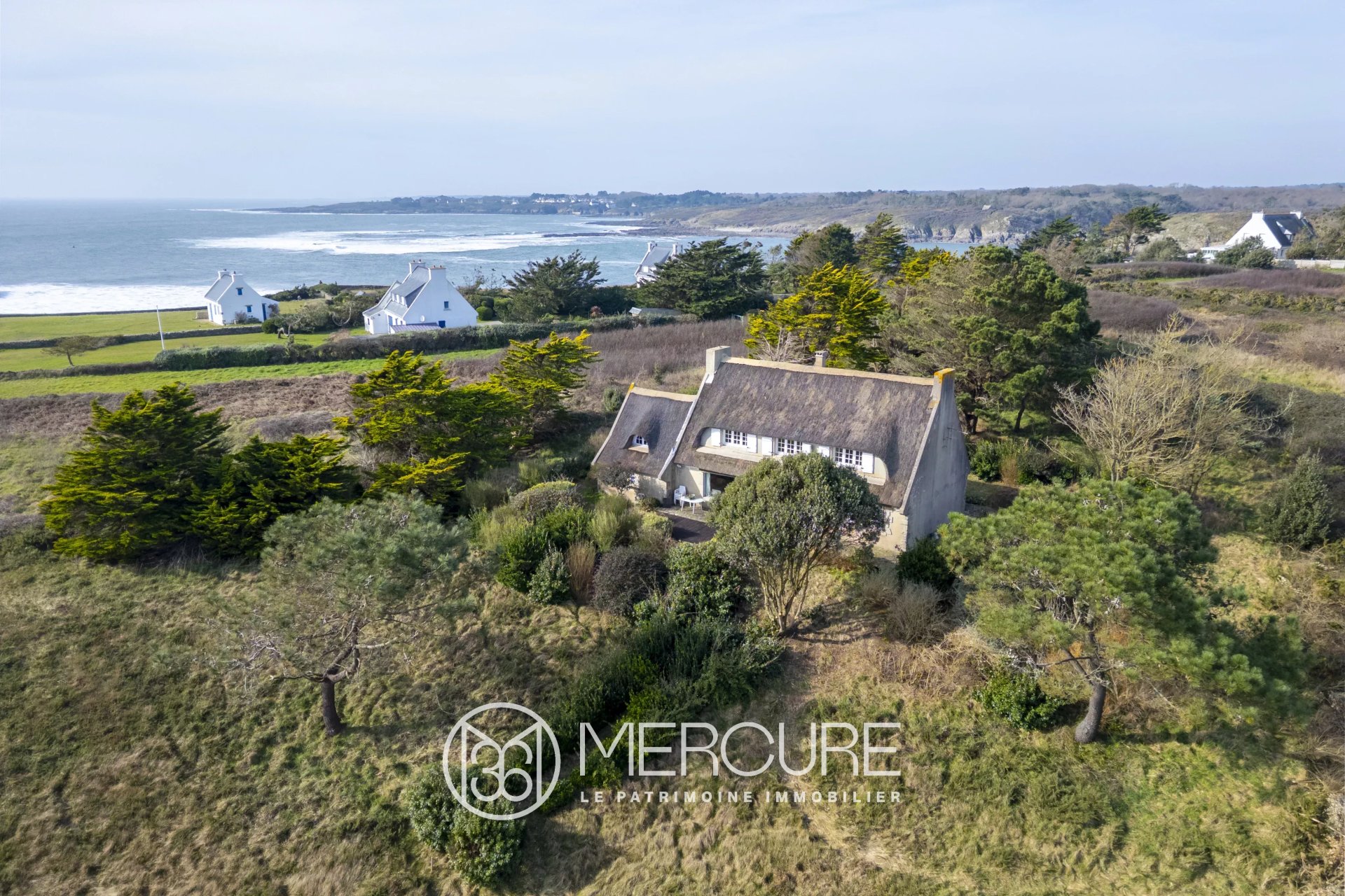 Cette chaumière à rafraîchir, des années 1970, en bordure de promontoire rocheux et abritée des vents dominants vous offre au sein d'un des territoires les plus sauvage et touristique de la côte Sud Finistère un panorama unique sur l'océan et les iles de Groix et, par temps clair, de Belle île en mer.