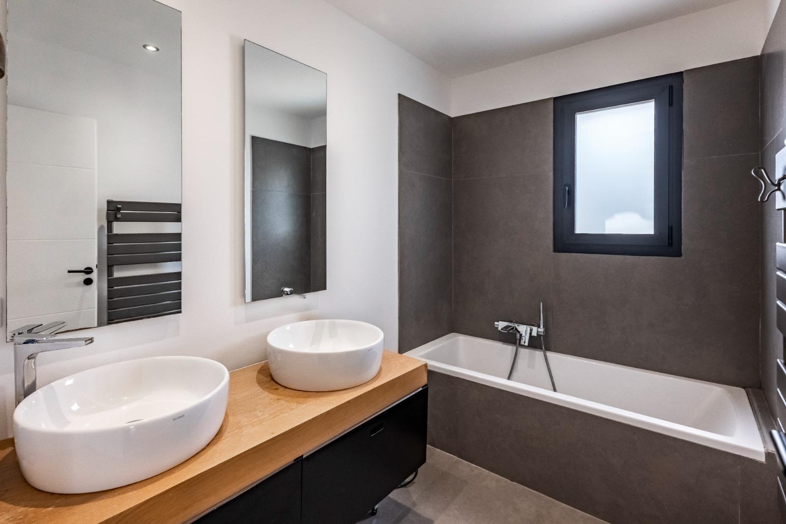 Nichée au bout d'une impasse confidentielle, cette villa de 2017 conjugue lignes épurées, volumes généreux et prestations haut de gamme. Entièrement de plain-pied, elle déploie 170 m2 habitables baignés de lumière grâce à une hauteur sous plafond de 3,40 m et de larges baies vitrées ouvrant sur de somptueuses terrasses en bois exotique.