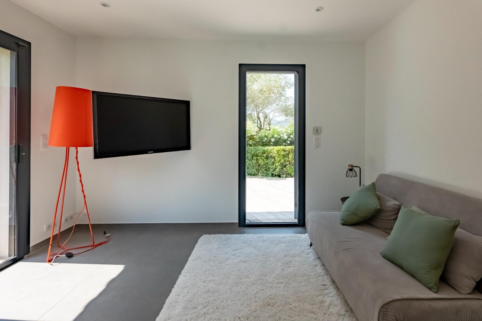 Confort moderne Chauffage et rafraîchissement par pompe à chaleur, menuiseries aluminium à rupture de pont thermique, volets roulants motorisés, éclairage LED intérieur/extérieur.