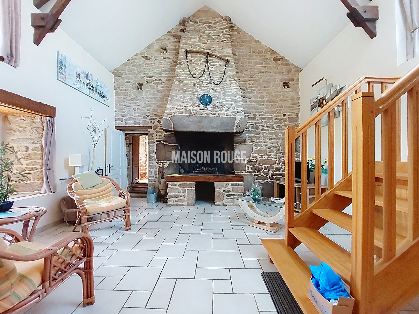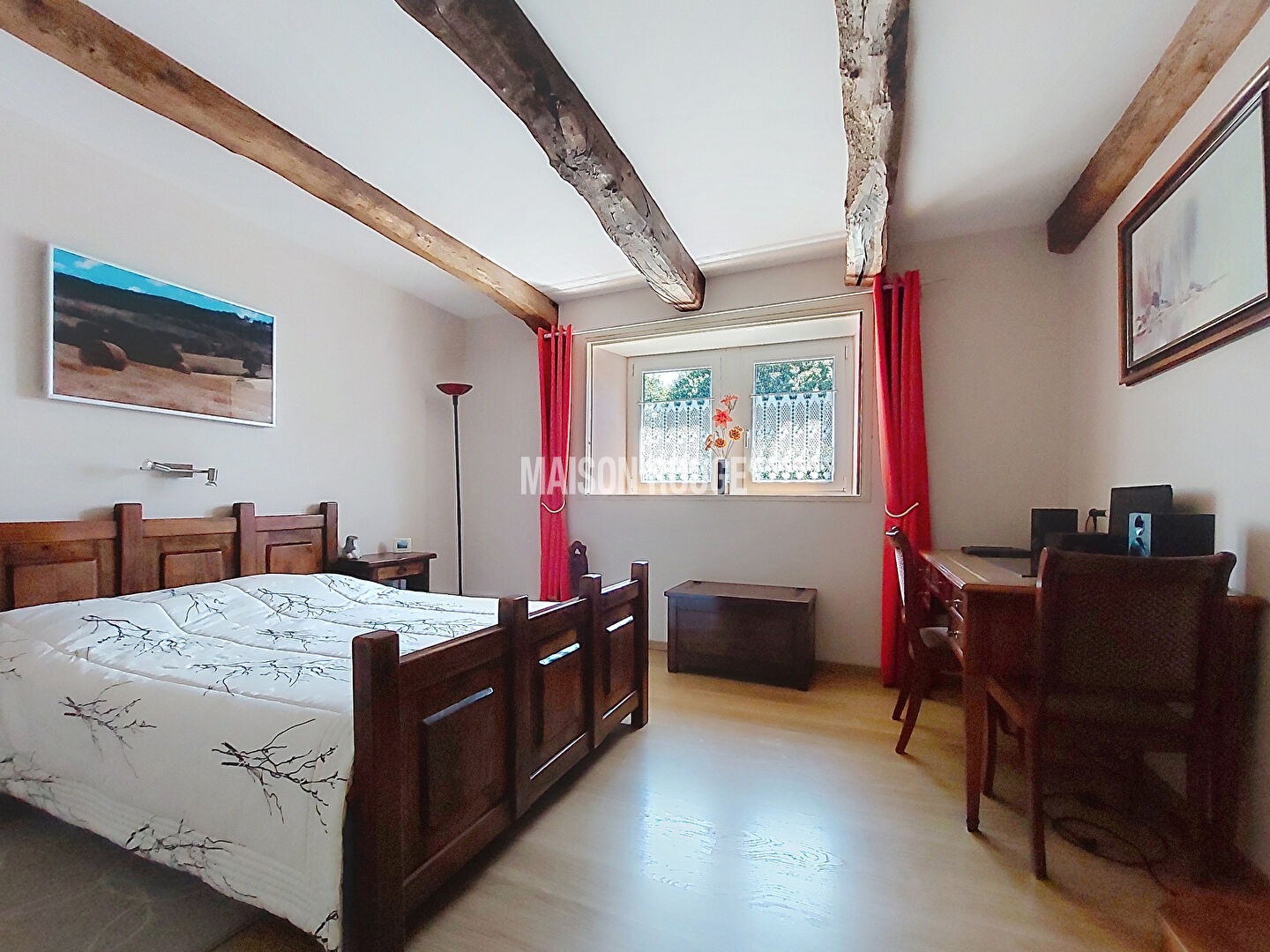 Séjour chaleureux avec cheminée en pierres et poutres apparentes, cuisine aménagée et équipée, salon d'hiver, une suite parentale plus trois belles chambres, salle de bain/wc, cabinet de toilettes/wc, salle d'eau/wc.