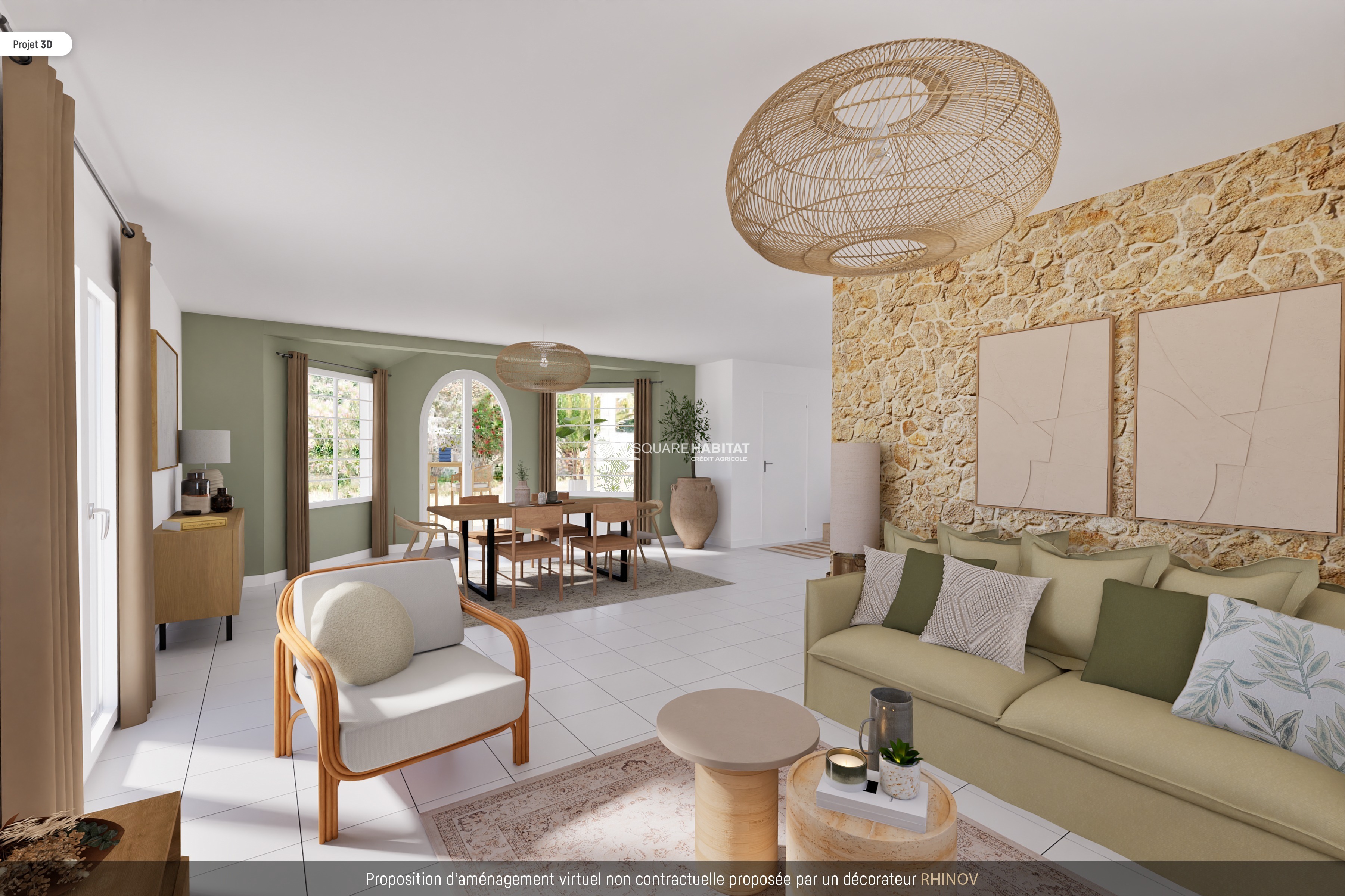 Au calme, sans vis à vis, belle maison de 2000, de plain pied, comprenant, un double séjour lumineux avec un bow-window, une cuisine séparée, un cellier, quatre chambres, deux points d'eau, un WC et un garage.