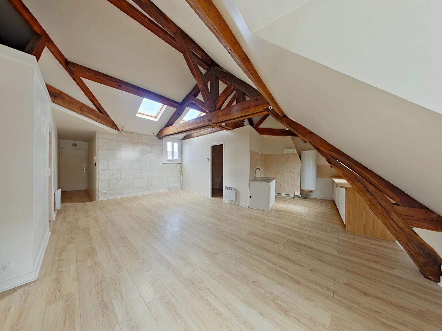 Les 2 appartements réunis font 86m² au sol, le T3 est en très bon état, la toiture a été entièrement refaite, le studio est à rafraichir.