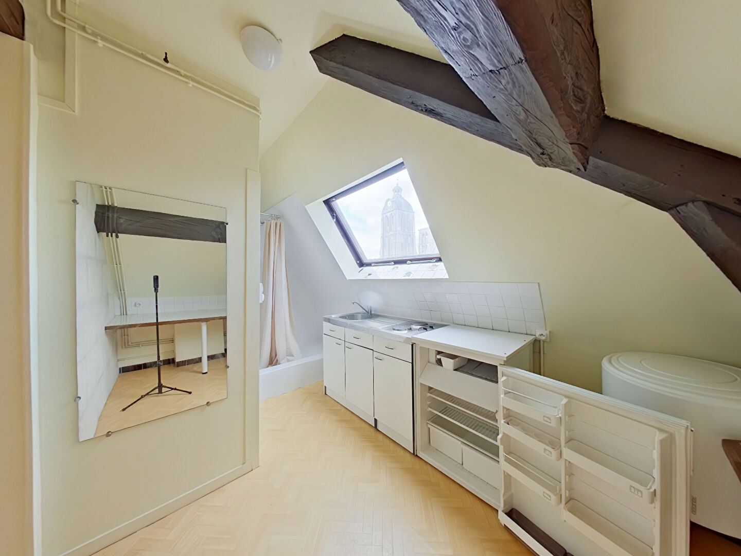 TOURS Hyper Centre, au 3ème et dernier étage d'une petite copropriété donnant sur la place des Halles, appartement T3 de 62m² + appartement indépendant de 12m² composé de :