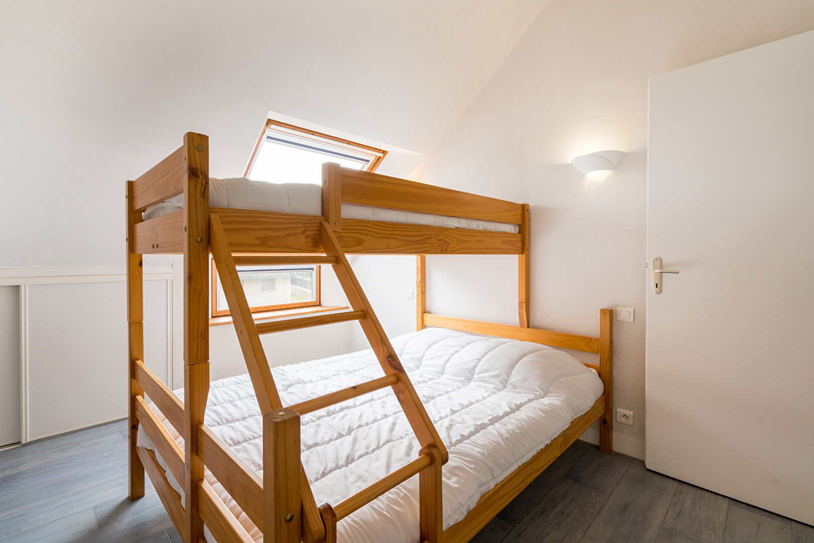 La Trinité/Mer 56470 - Jolie maison de famille nichée au fond d'une impasse, la plage de Kervillen à pied, juste en face ! Elle se compose au RDC d'un hall d'entrée , d'un salon séjour lumineux avec un poêle ,donnant sur une belle terrasse bien orientée, une cuisine aménagée et équipée, une chambre et une salle d'eau, un WC indépendant. A l'étage vous disposez d'une mezzanine, 2 chambres, une salle de bain et un WC. Un garage ainsi qu'un local à vélo complètent cette belle demeure à proximité immédiate de la plage de Kervillen et son très bel environnement ! RARE sur le marché , secteur très prisé !