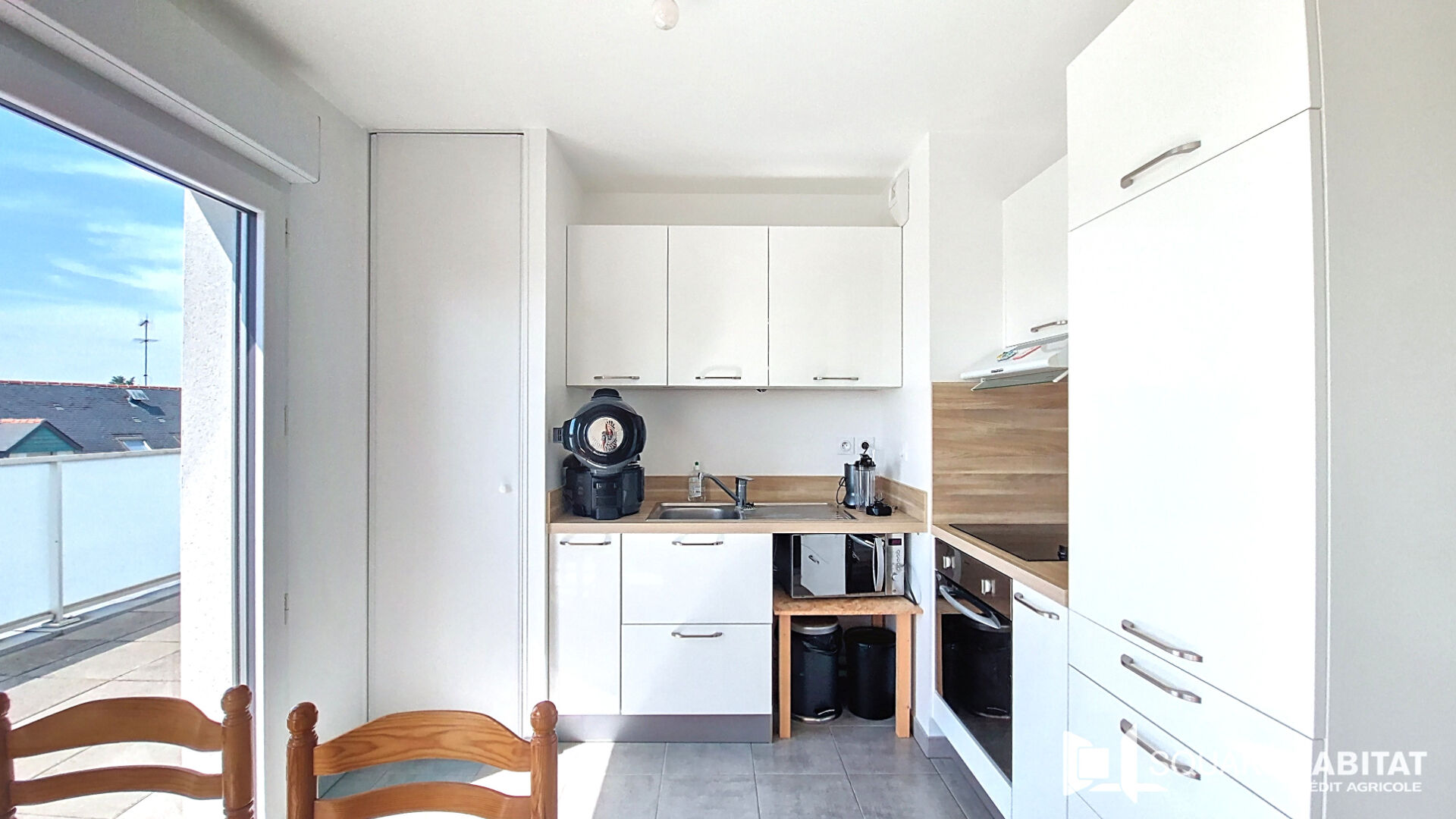 Il se compose d'une entrée avec placard, deux chambres dont une avec placard, une salle de bains, un WC indépendant, une belle pièce de vie et une cuisine aménagée et équipée baignées de lumière.