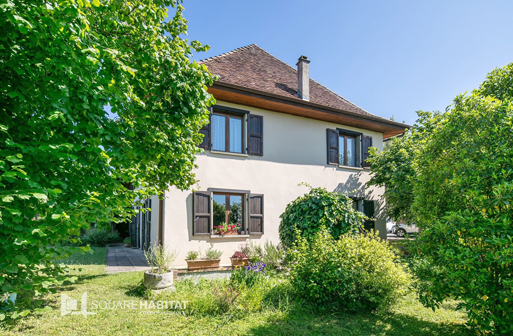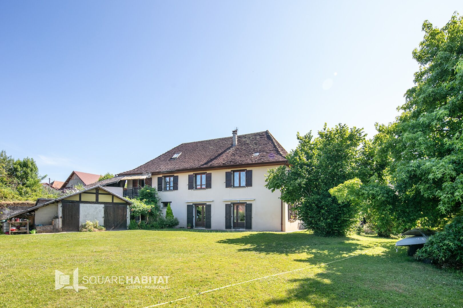 Un appartement attenant, accessible de l'intérieur et de l'extérieur, est parfait pour accueillir des invités ou générer des revenus. À l'extérieur, profitez d'une belle terrasse ombragée, d'un abri de jardin de 44 m². Des travaux de rafraîchissement sont à prévoir.