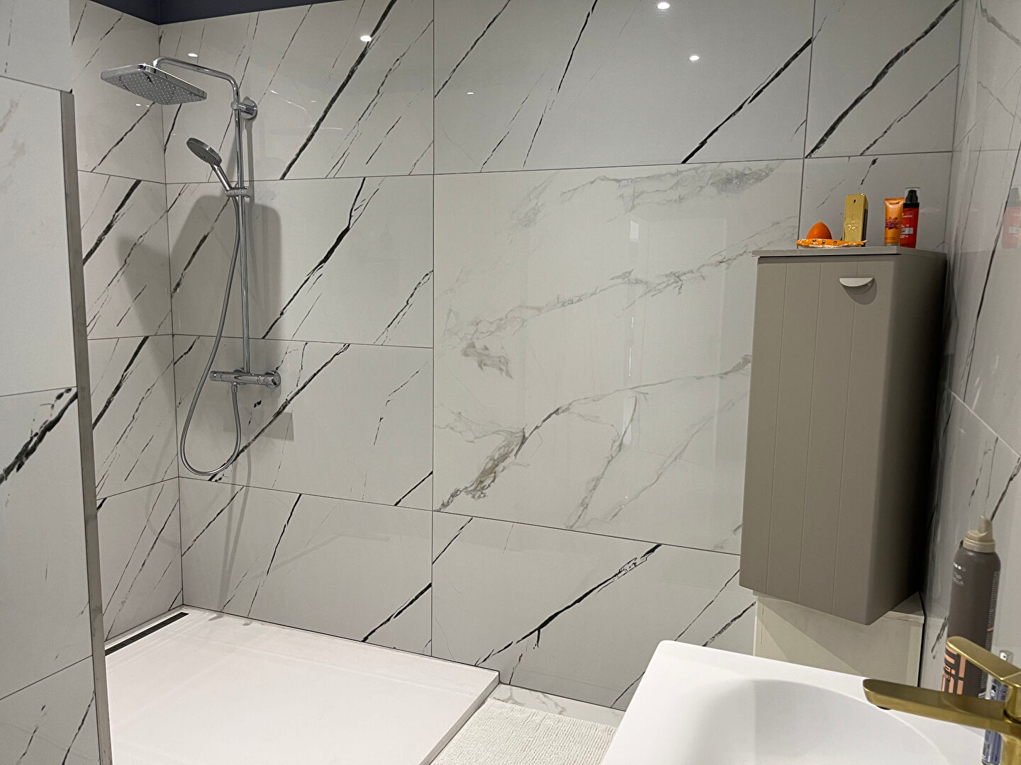 Étage : Vaste couloir donnant accès à trois grandes chambres avec VELUX, salle d'eau et toilettes,