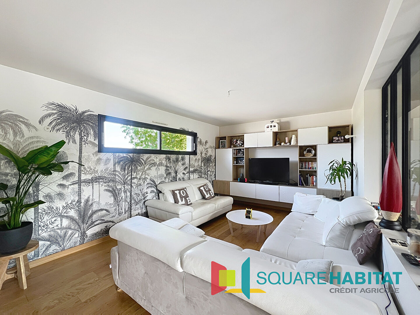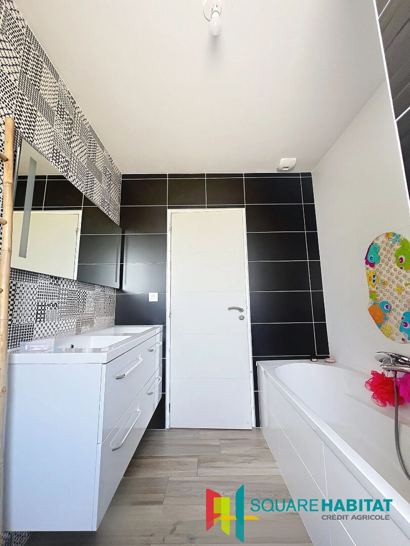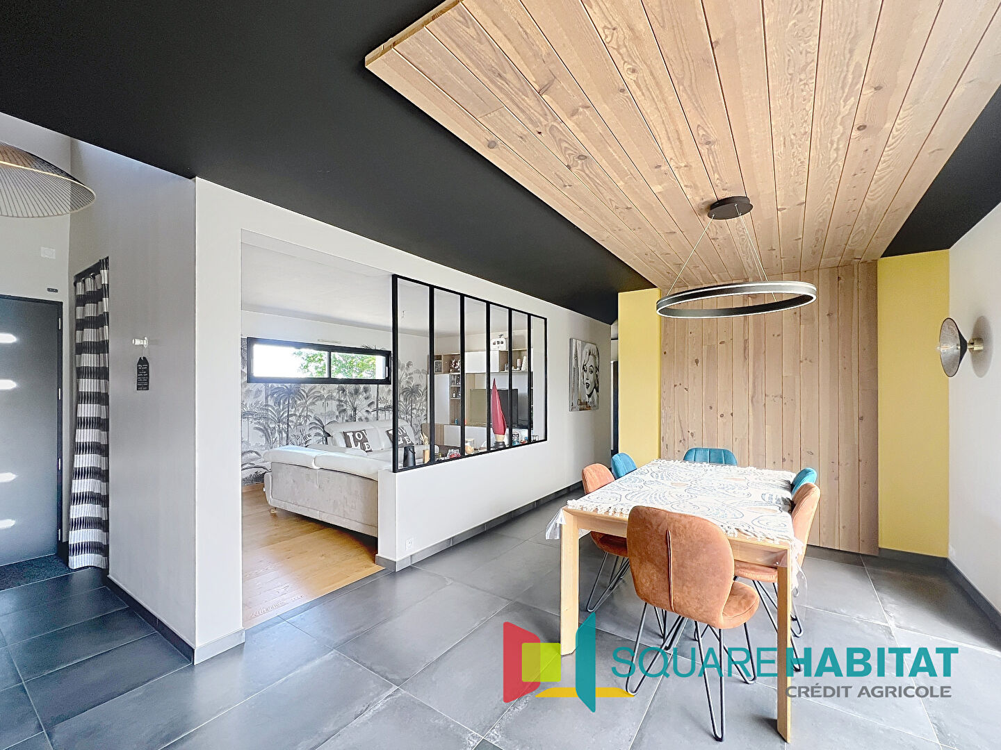Au rez-de-chaussée : entrée avec rangements ouvrant sur une salle à manger lumineuse, un salon confortable et une cuisine fonctionnelle toute équipée donnant accès à une buanderie aménagée.