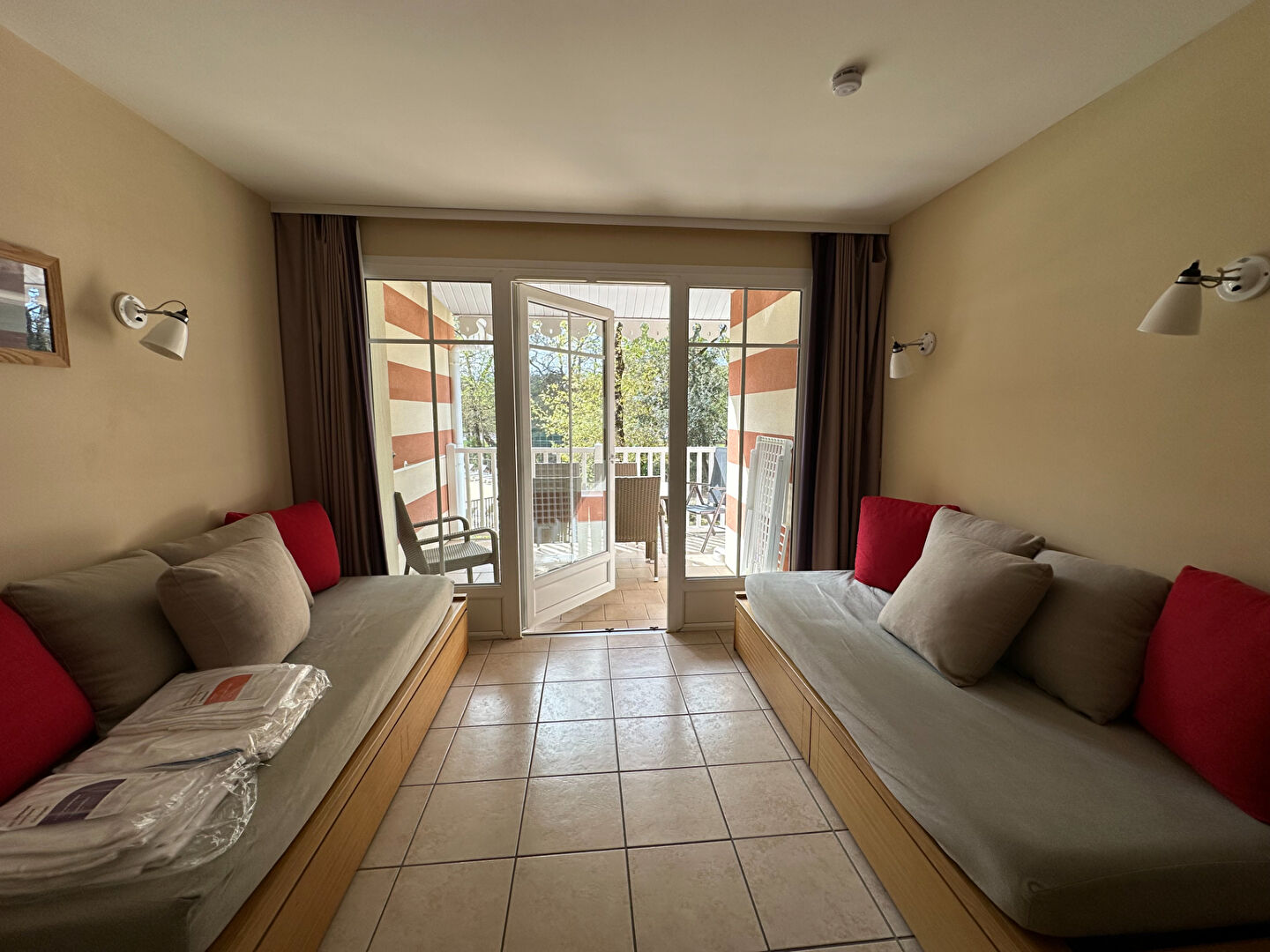 L'appartement se compose d'une entrée, d'une chambre confortable et d'une pièce de vie lumineuse ouvrant sur un balcon avec vue sur la piscine.