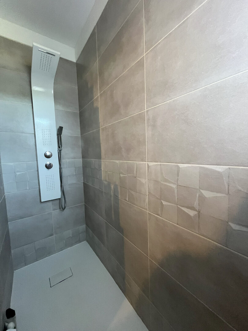 Pavillon atypique composé d'une véranda, dégagement, salon, séjour, cuisine indépendante aménagée, trois chambres, wc, salle de bains avec douche à l'italienne (récente)