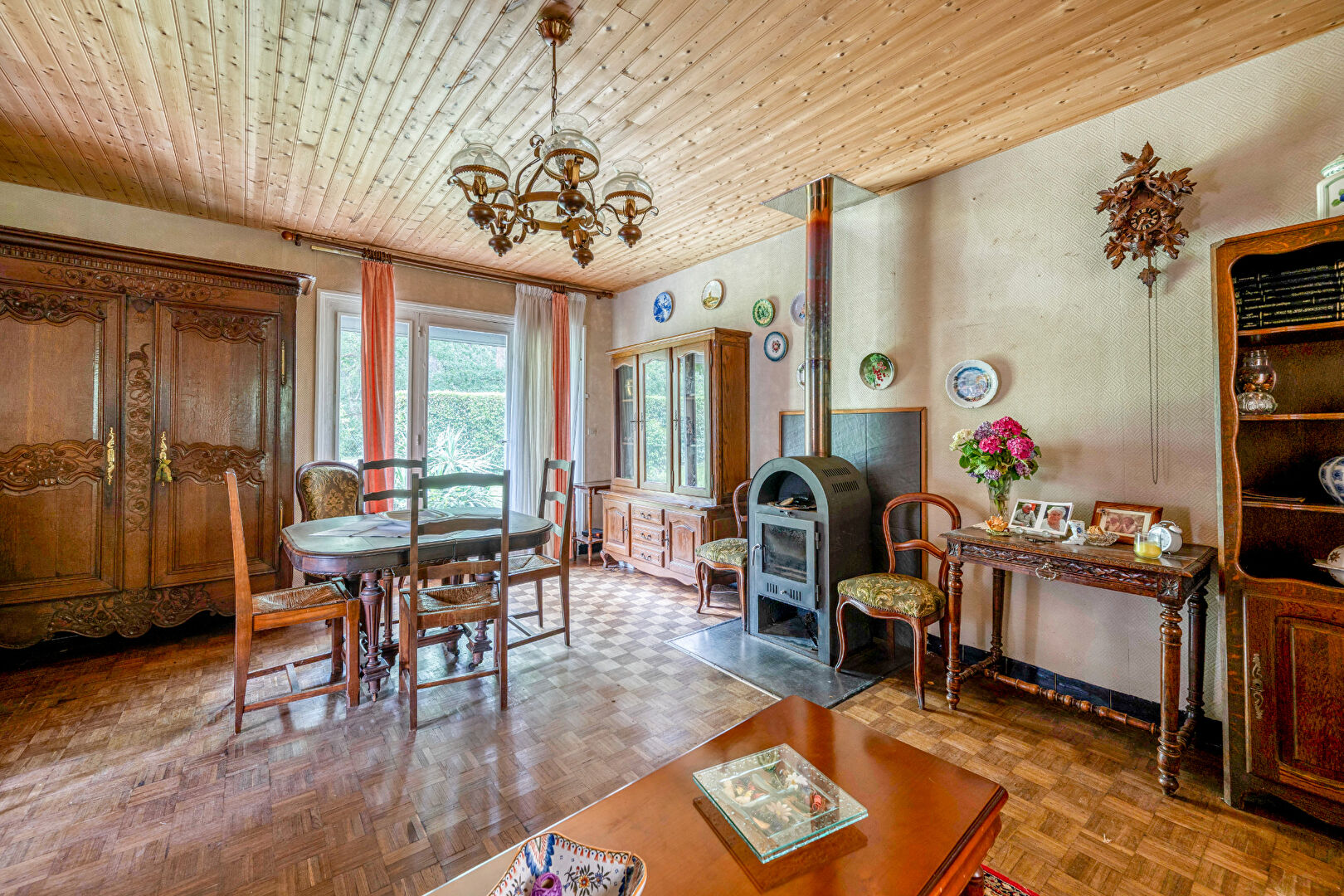 D'une surface habitable d'environ 95 m², cette maison de caractère à rénover se compose d'une pièce de vie avec son poêle, d'une cuisine séparée, de 2 chambres, de 2 bureaux (idéals pour le télétravail ou une activité indépendante), d'une salle d'eau, d'un WC indépendant ainsi que d'une véranda.