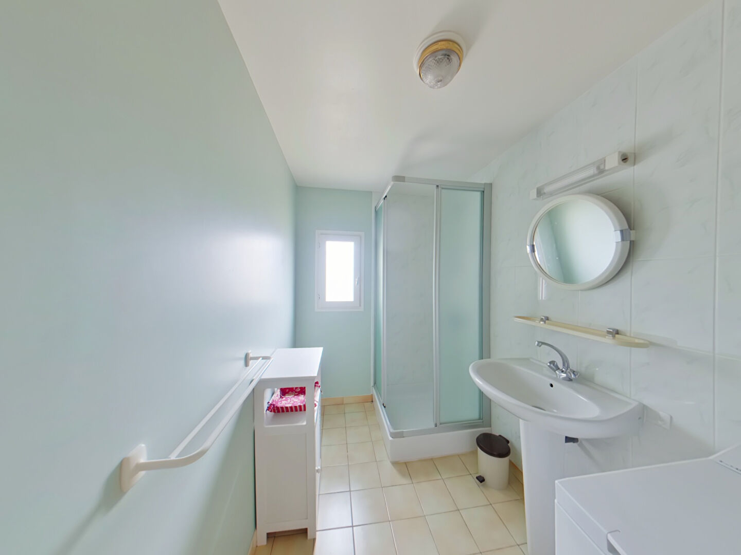 Au rdc cuisine-salle à manger, vaste chambre, salle d'eau, toilettes, buanderie, garage.