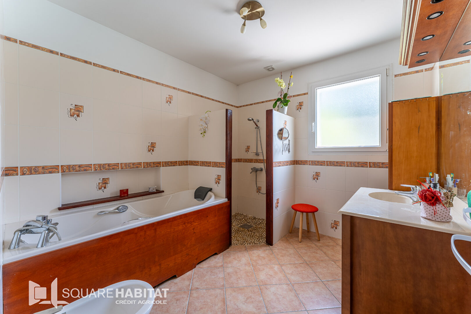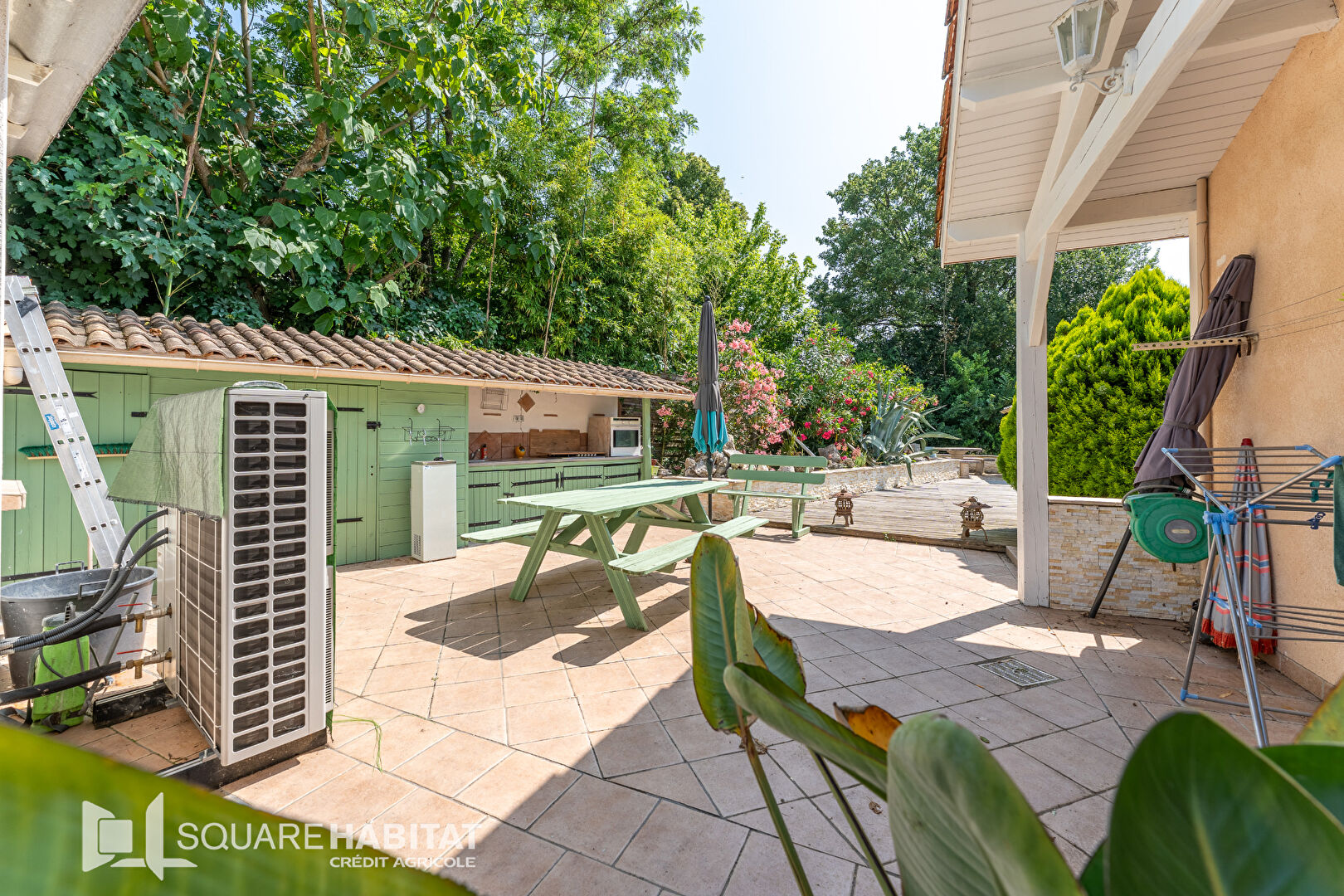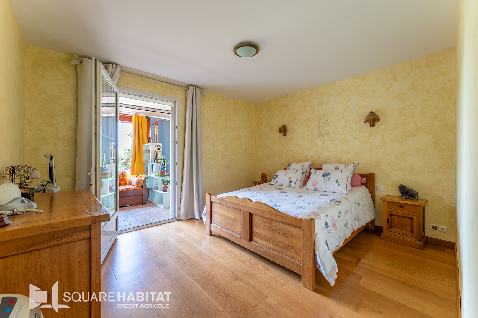 Sur un terrain arboré d'environ 5000 m², cette maison de 170 m² offre de beaux volumes et un agencement fonctionnel. Elle se compose de trois chambres, un dressing, un bureau, une cuisine ouverte sur un séjour lumineux prolongé par une véranda. Une buanderie mène à une cuisine d'été donnant directement sur la piscine.