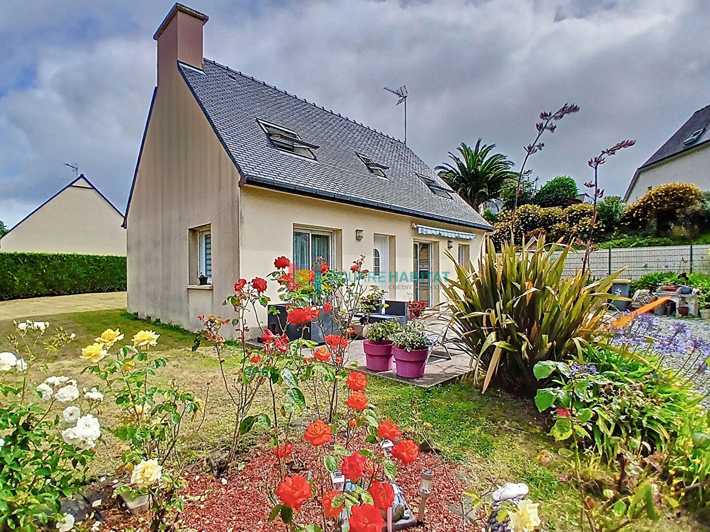PLOUBAZLANEC, les commerces et les plages à pieds, agréable maison de 2004 située dans un quartier très calme Elle se compose au rez-de-chaussée d'un séjour salon lumineux agrémenté d'une cheminée avec insert, espace cuisine aménagée et équipée, une chambre, salle de bains et wc