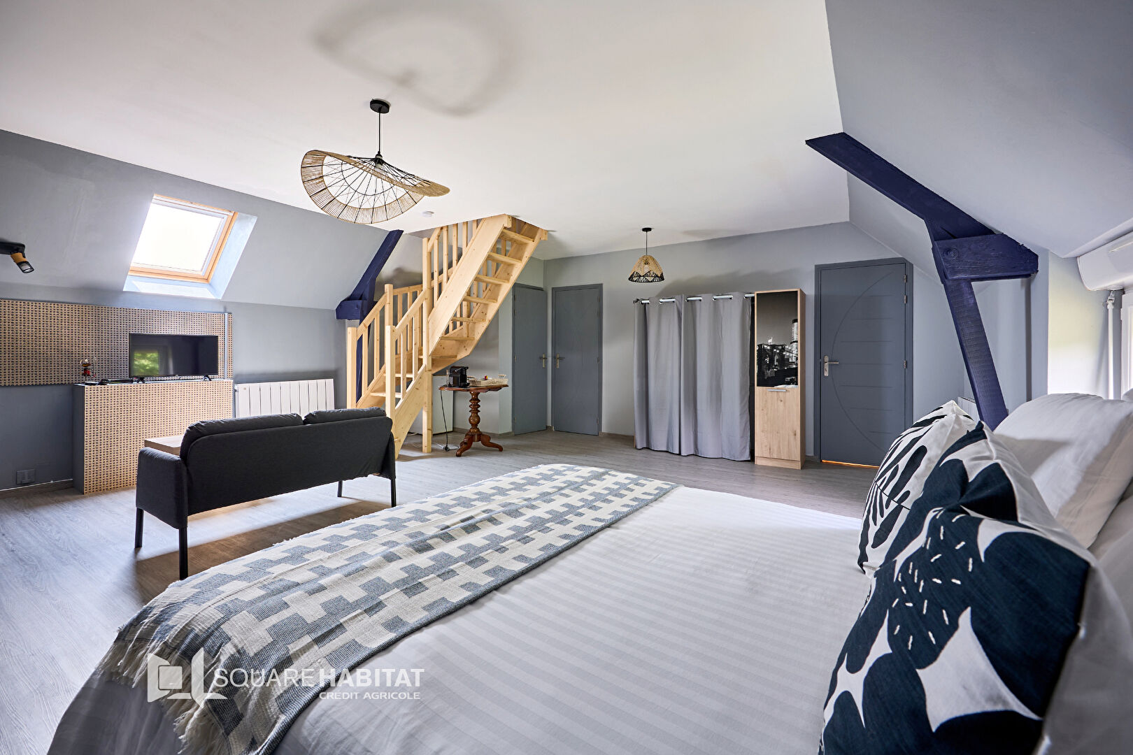 L'étage consacré à l'activité professionnelle, vous offre une charmante pièce palière, vous trouverez quatre belles chambres avec salle d'eau privative et wc, dont trois sont utilisées en chambres d'hôtes. Pour la table d'hôtes, vous profiterez d'une grande pièce de vie de 40m² alliant charme et modernité, avec un espace cuisine et mezzanine.