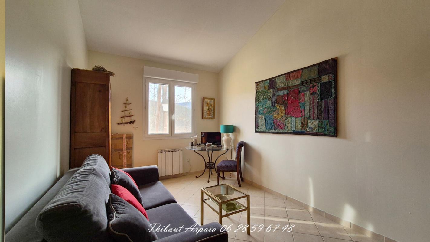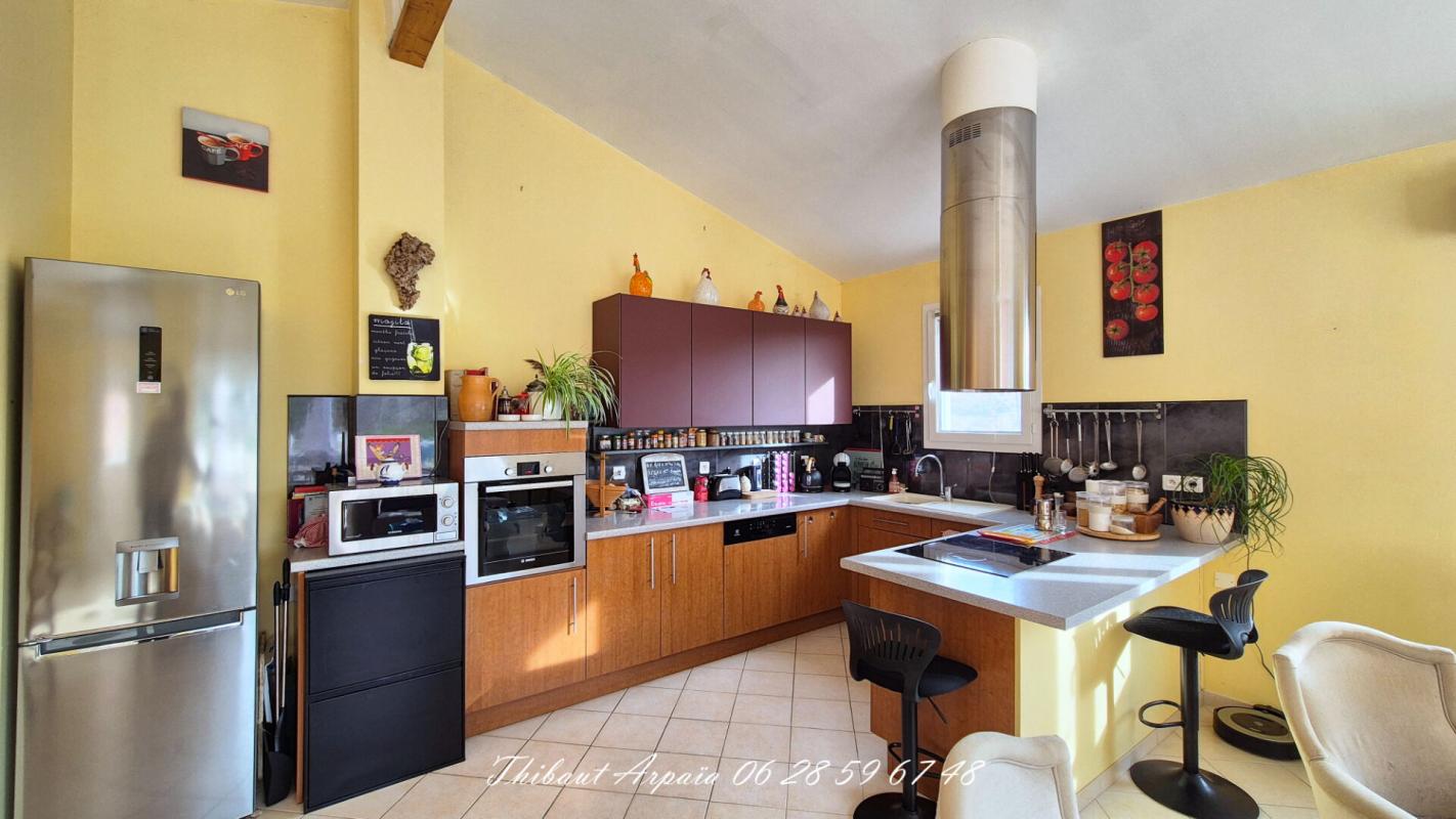 Elle dispose d'un grand séjour lumineux avec cuisine ouverte (équipée) et double exposition, offrant une vue dominante et dégagée. Cet espace de vie s'ouvre sur une terrasse préservée des regards, idéale pour profiter de l'extérieur.