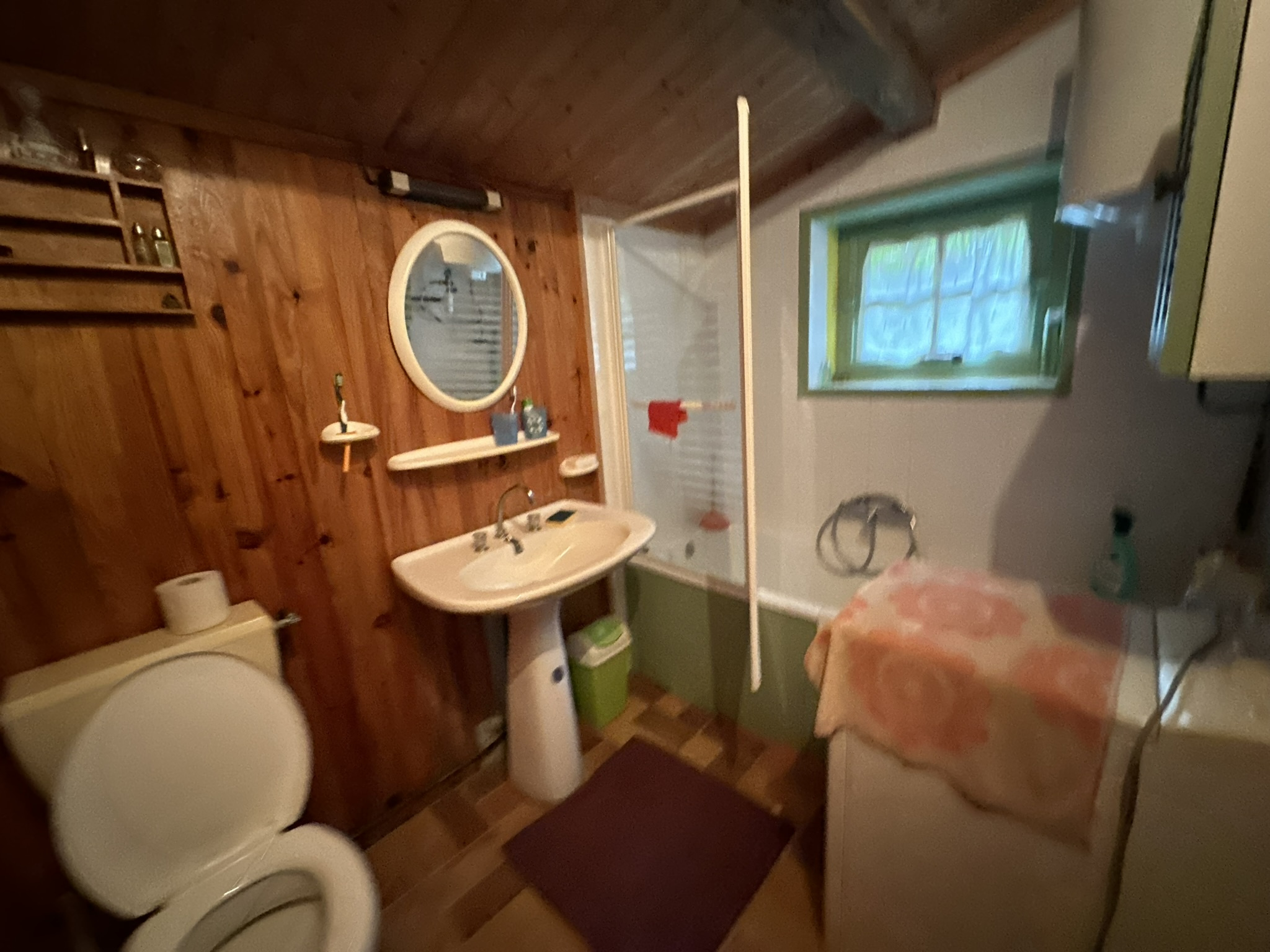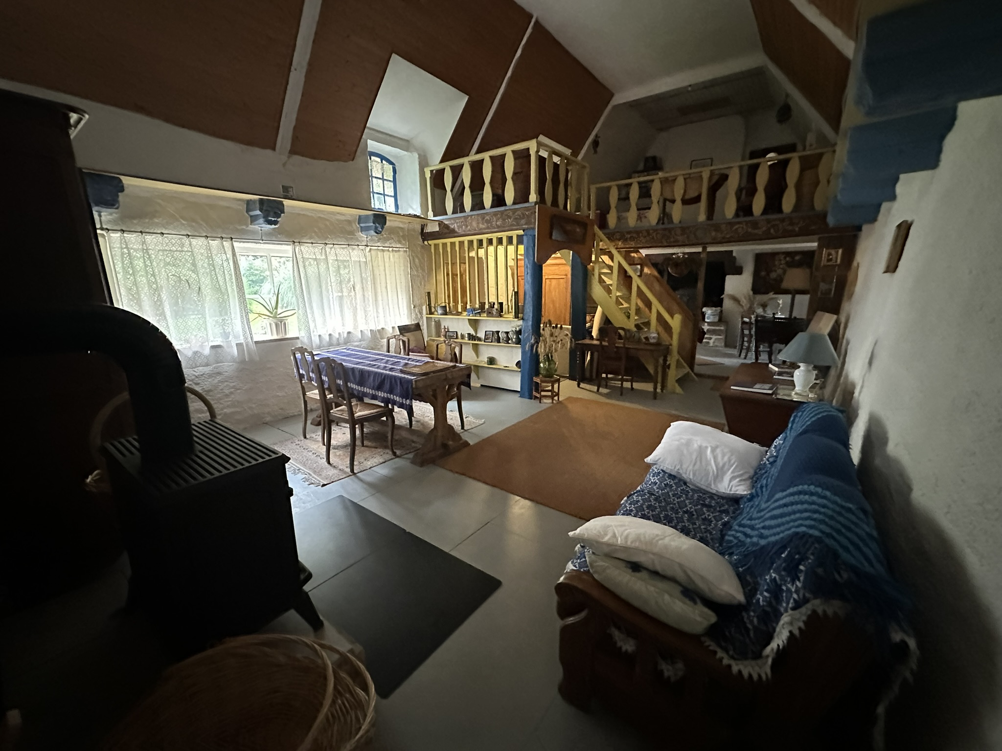- Une première longère comprenant entrée, cuisine salle avec cheminée,salon salle avec poele à bois, salle de bains, WC.