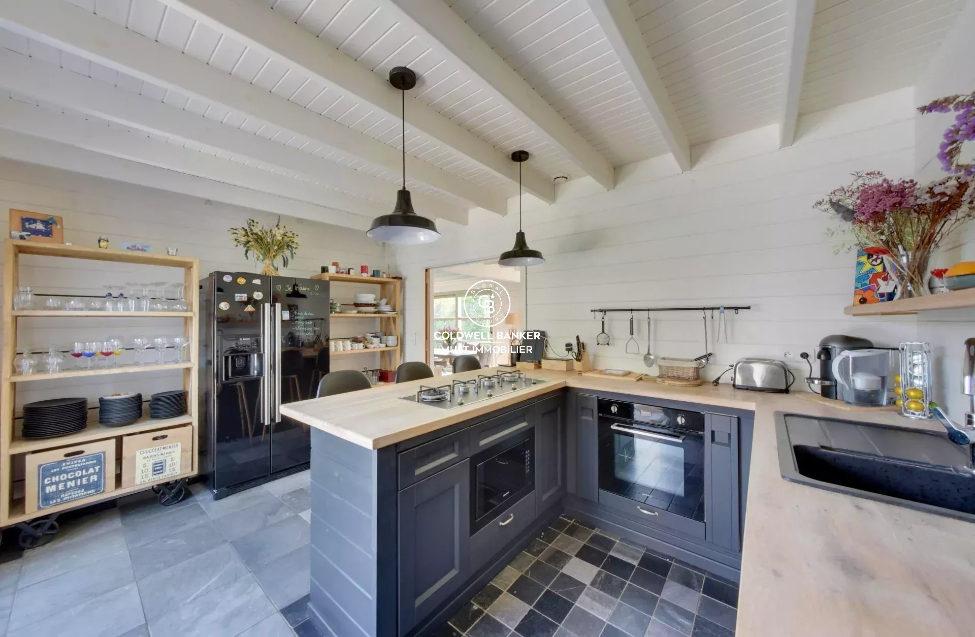 Un atelier aménagé vient parfaire cet espace : l’endroit idéal pour déguster un cocktail lors des belles soirées d’été.