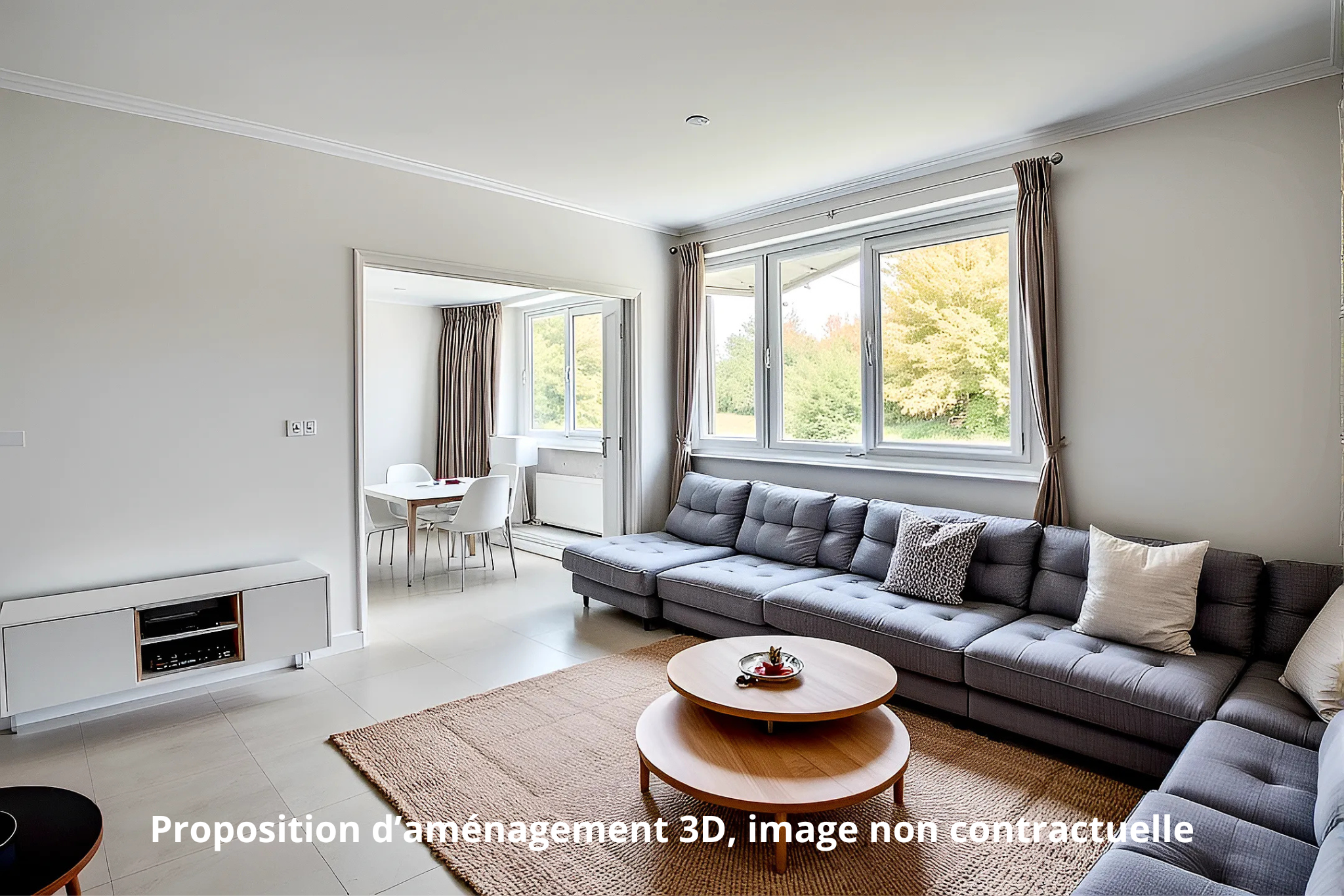 Cet appartement libre d'occupation de type 4 comprenant une entrée, une cuisiné aménagée avec cellier attenant, un dégagement avec placard, un wc, deux chambres dont une avec placard, une salle d'eau, un salon-séjour d'une belle superficie qui permettrait la création d'un bel espace bureau pour du télétravail ou d'une 3ème chambre.