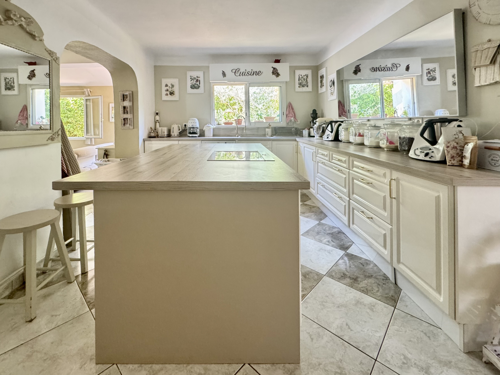Une cuisine de belle facture entièrement équipée avec ilot central,