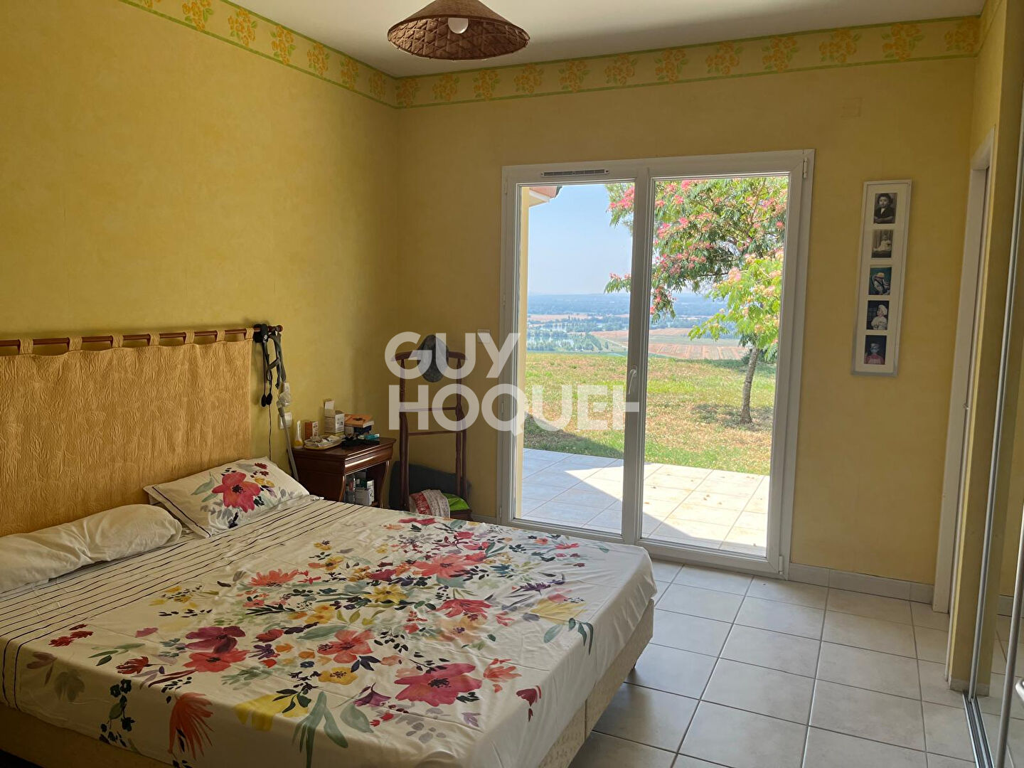 Salon/ salle à manger donnant sur terrasse et jardin avec la vue sur la vallée, cuisine équipée, rangements, 4 chambres dont 1 suite parentale,....