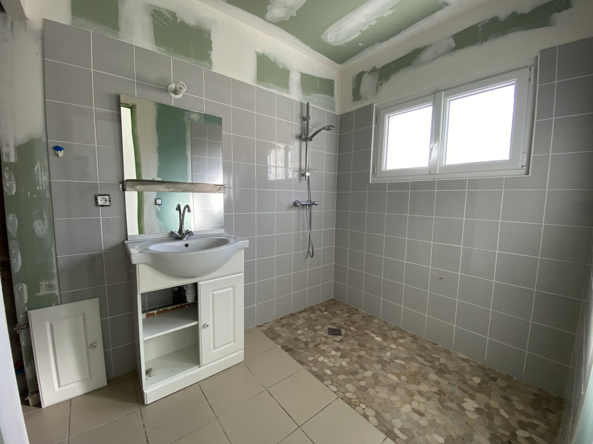 - au rez-de-chaussée : un séjour de plus de 30m², une cuisine aménagée, une salle de douche, des toilettes ;