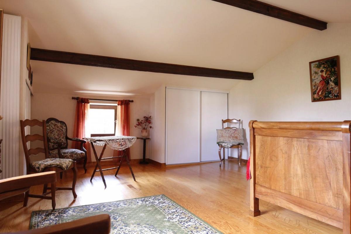 À l'étage, un séjour principal de 20 m² ouvert sur une grande terrasse exposée plein sud, une cuisine meublée et équipée, une chambre, une salle de bain avec bidet. Une grande chambre sous-pente exposée Est/Sud au deuxième étage.