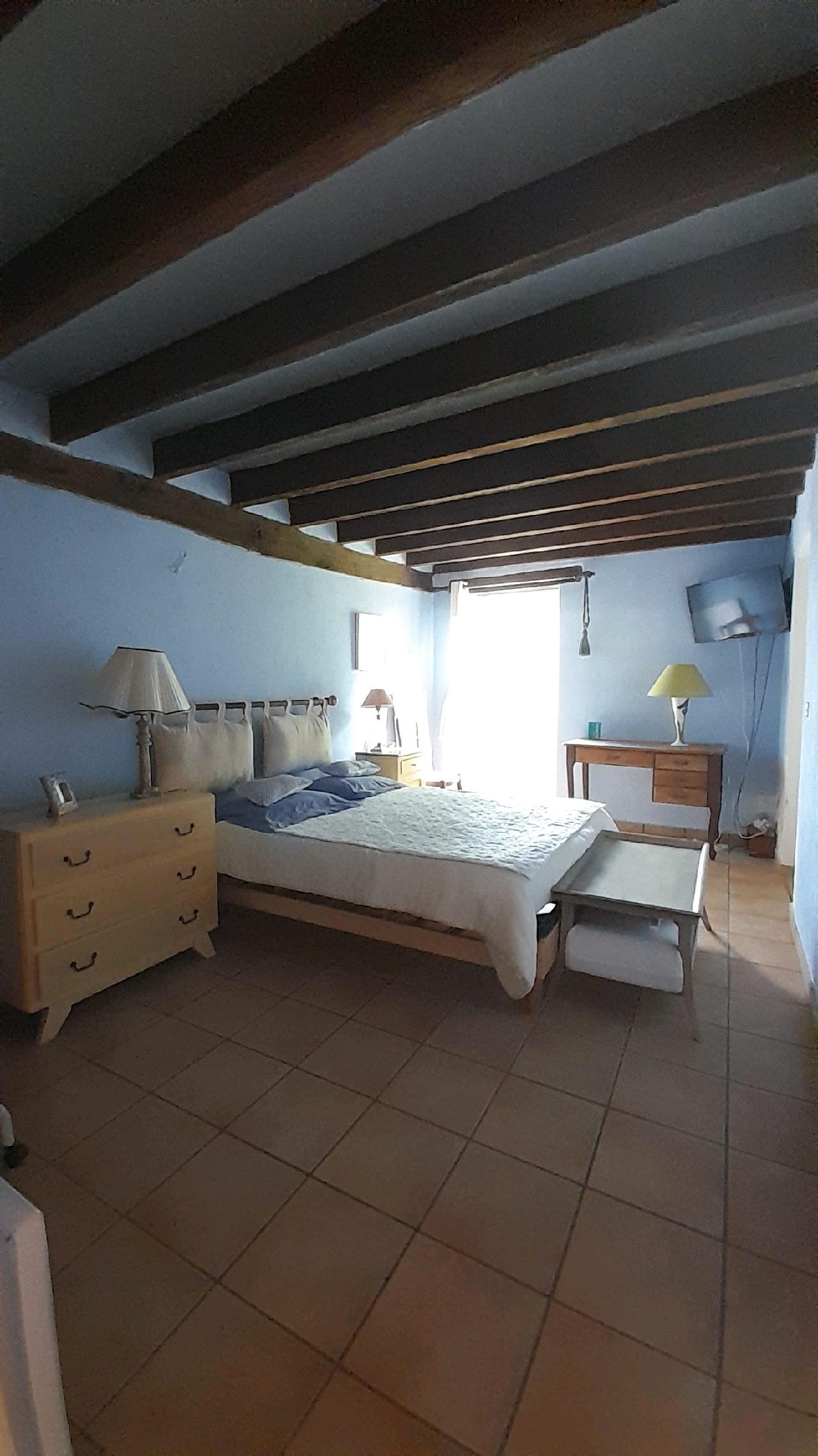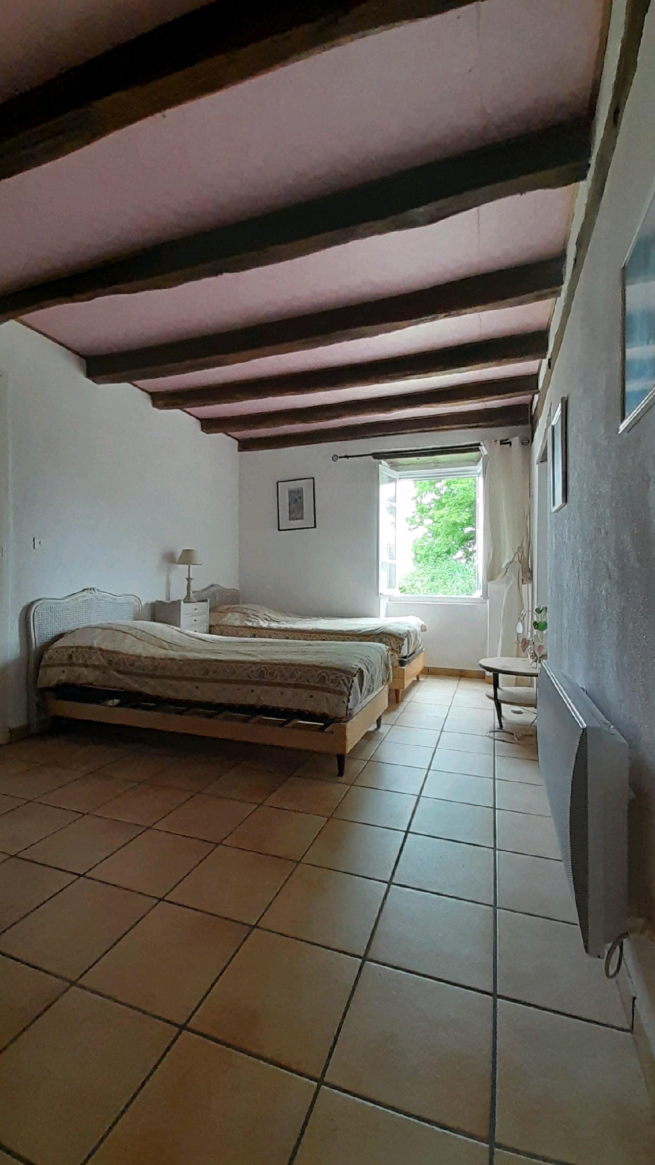 Elle possède également en rez de chaussée, trois grandes chambres (13,70; 13,70 et 17,50 m²) dont deux avec une cheminée, une salle de bains et un salon mansardé à l?étage (12,30 m² habitables).