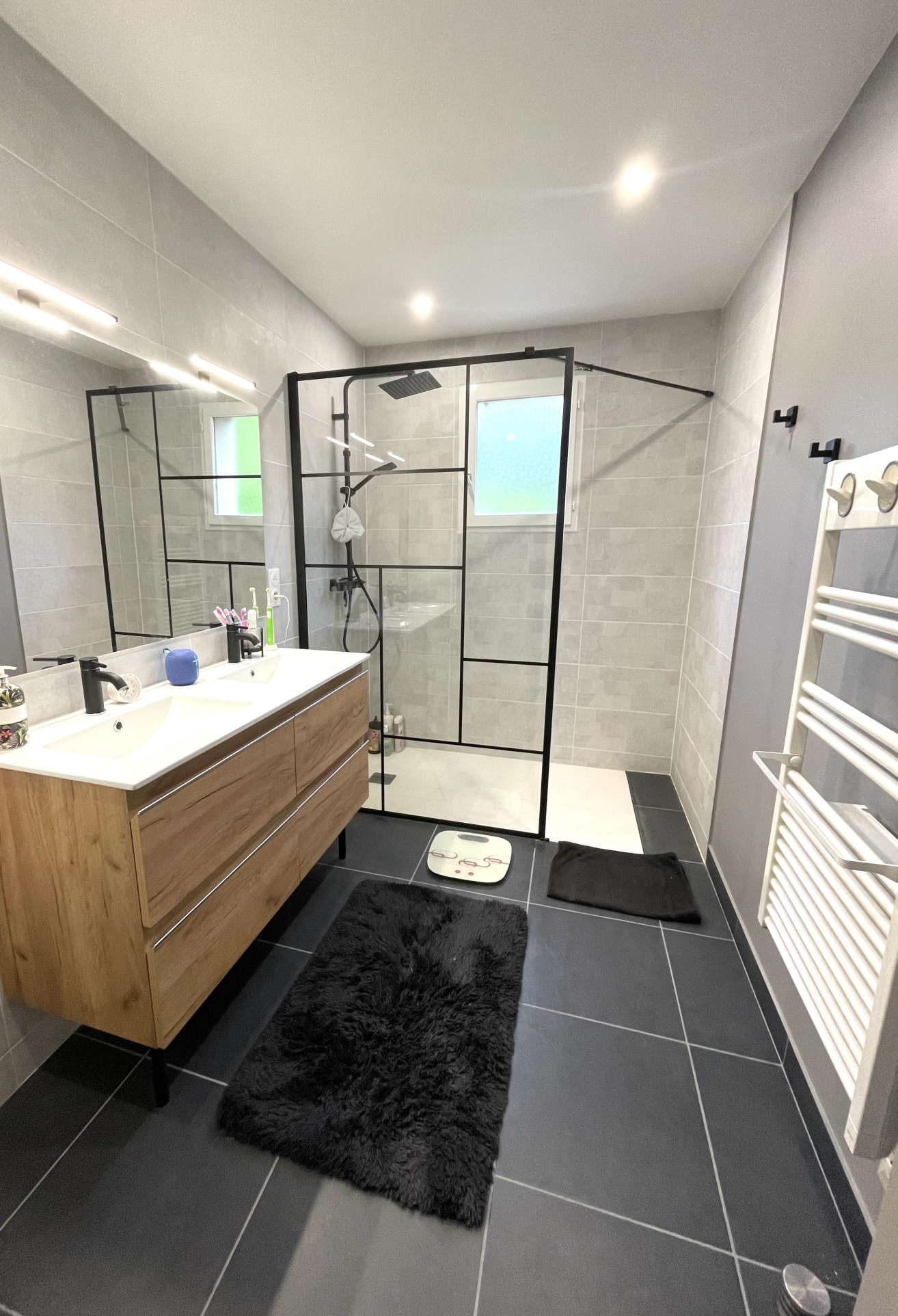 Fonctionnelle et bien pensée, elle offre quatre chambres dont une au rez-de-chaussée avec une salle de bain, idéale pour recevoir ou pour une vie de plain-pied. À l'étage, trois chambres confortables et une salle d'eau complètent l'espace nuit.