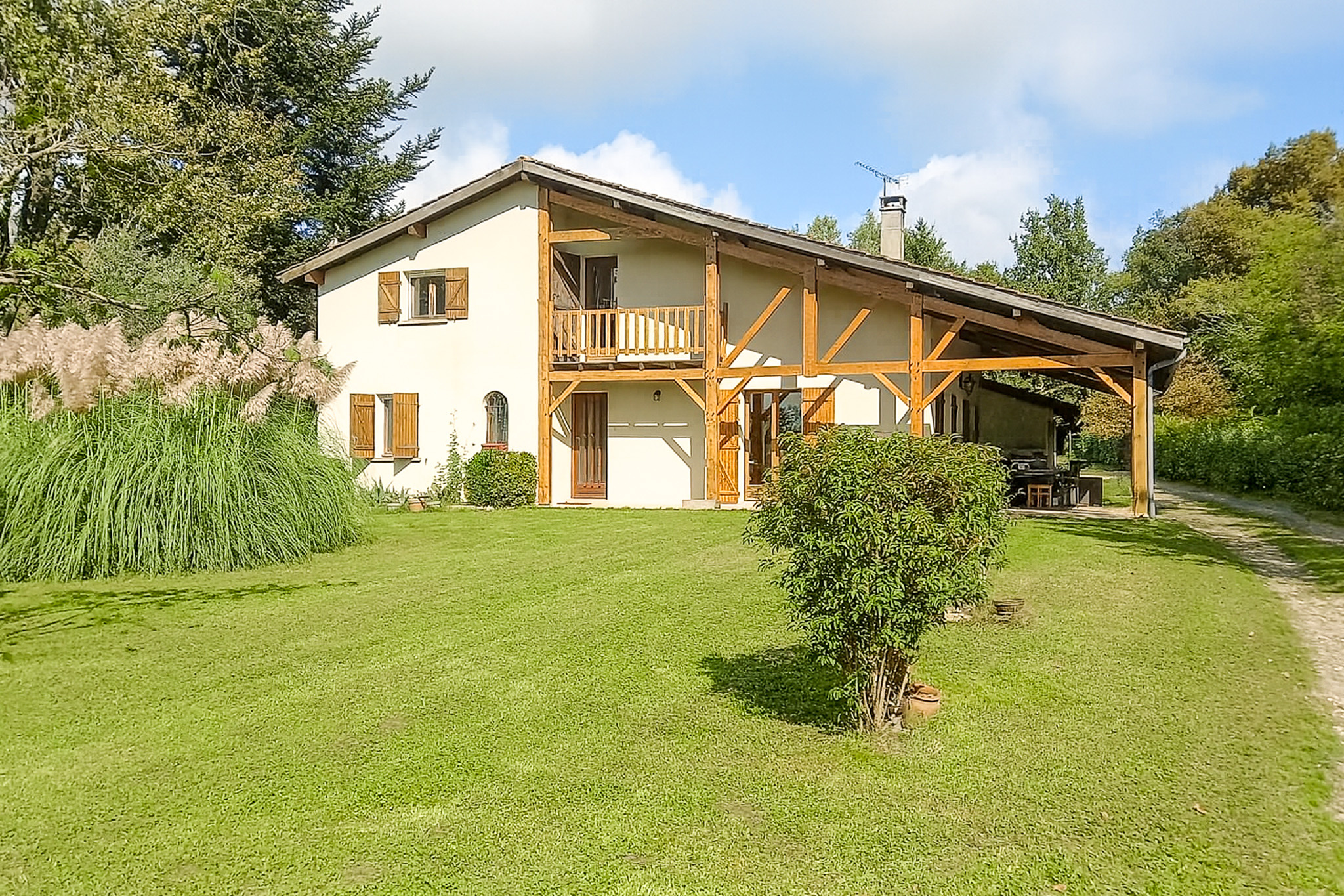 À 7 minutes de l'autoroute, cette maison au style landais, pleine de charme vous attend dans un environnement calme, avec une belle vue dégagée et un grand espace extérieur où il fait bon vivre.