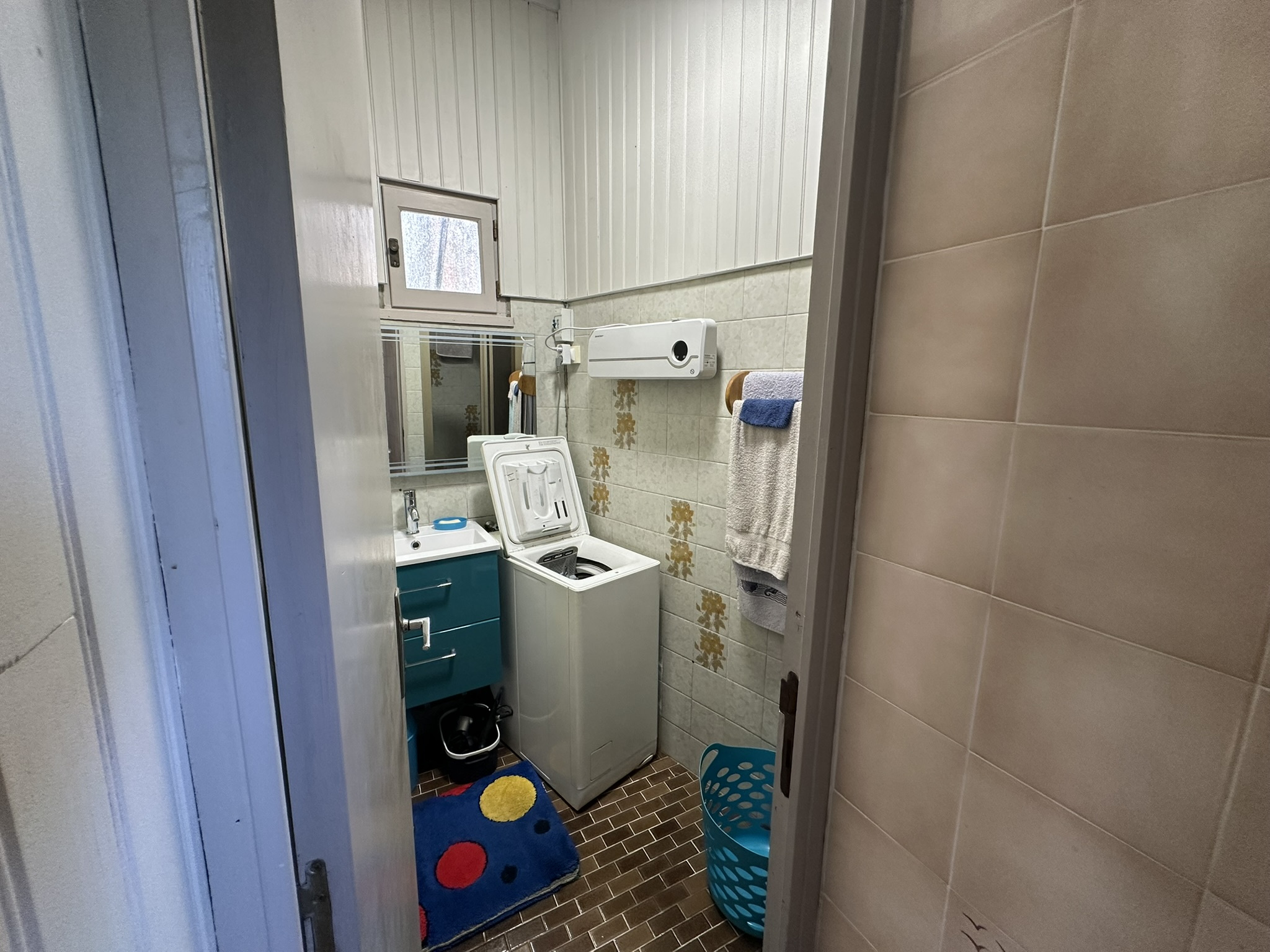 Une pièce de vie avec salon et salle à manger, d'une cuisine aménagée et équipée, une salle d'eau et un WC,