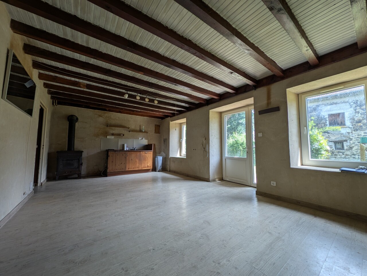 ? Chauffage fioul accompagné d’un poêle à bois, fenêtres PVC double vitrage, charpente en bon état, raccordé au tout à l'égout !