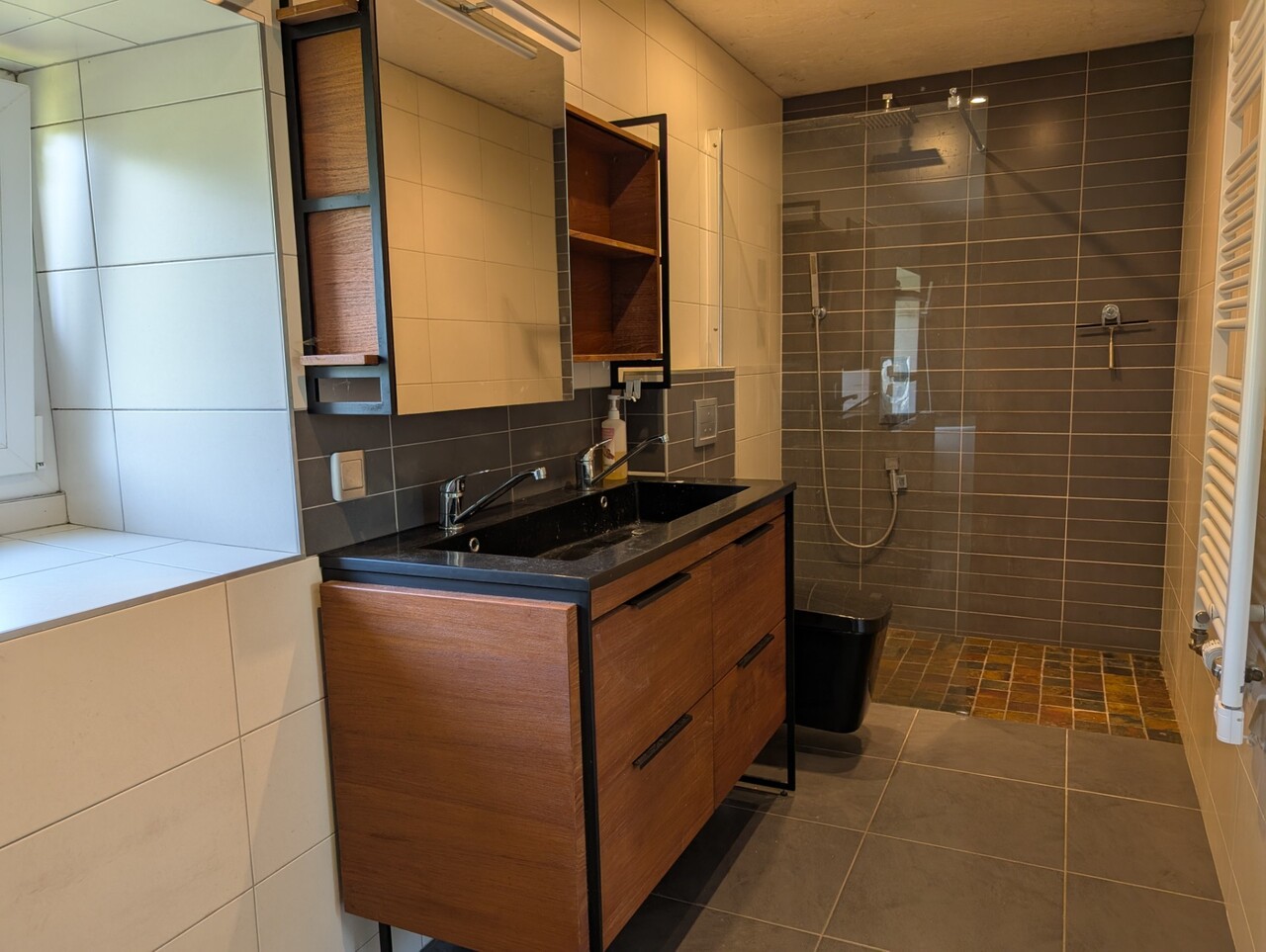 ? À l’étage : deux chambres et une salle d’eau spacieuse avec douche et baignoire de 14 m².